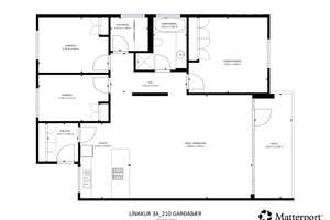 Eignin er samtals 130.8 fm2 og samanstendur af góðri forstofu, eldhúsi, stofu/borðstofu, 3 svefnherbergjum, baðherbergi, þvottahúsi og mjög sól- og skjólsælum svölum með útsýni til suðurs.