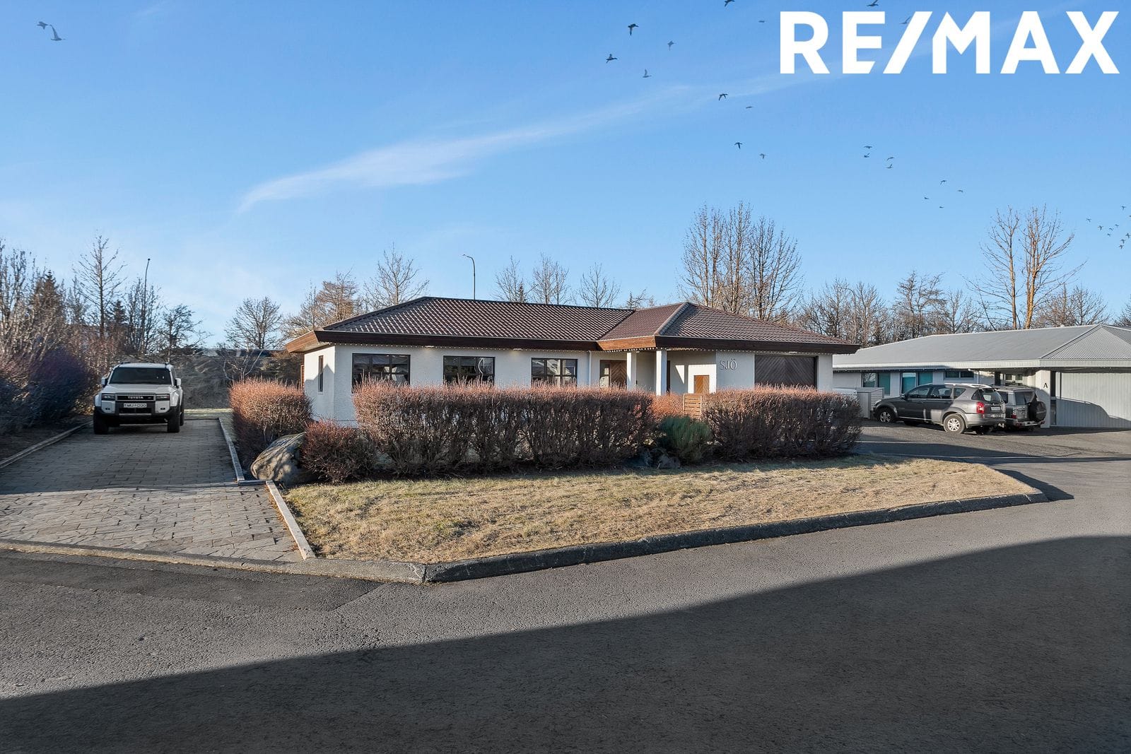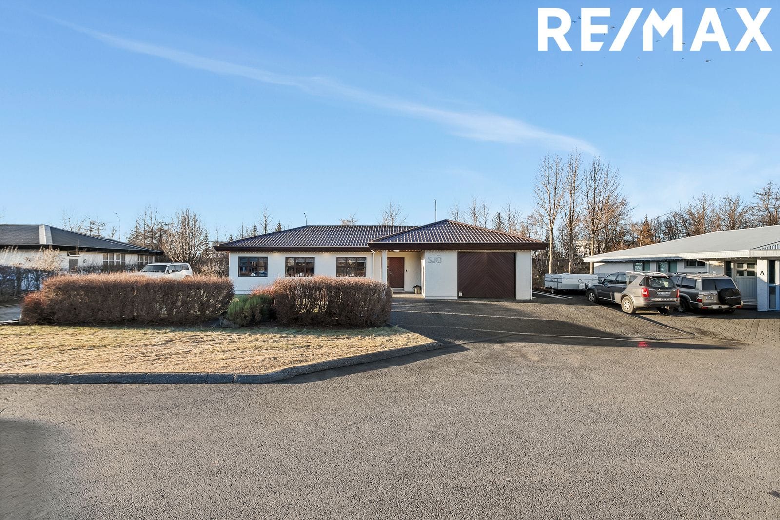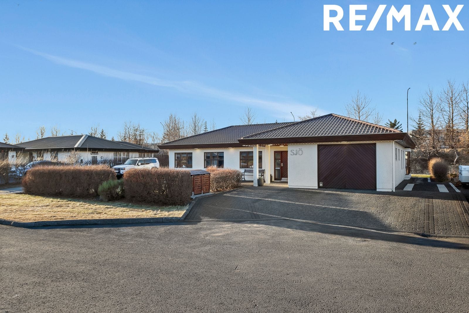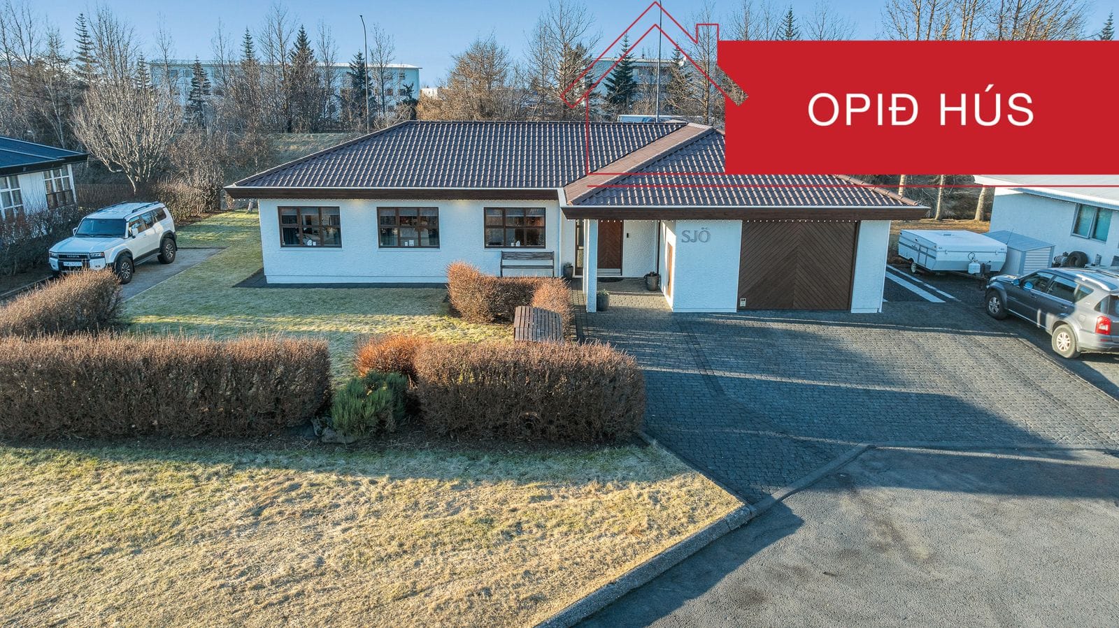 Einstök eign, afar vel staðsett innst inni í botnlanga, góð innkeyrsla með hita í plani og önnur stór innkeyrsla hellulögð.