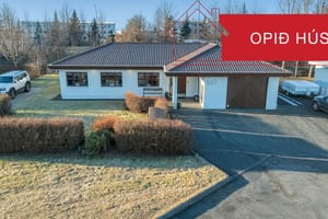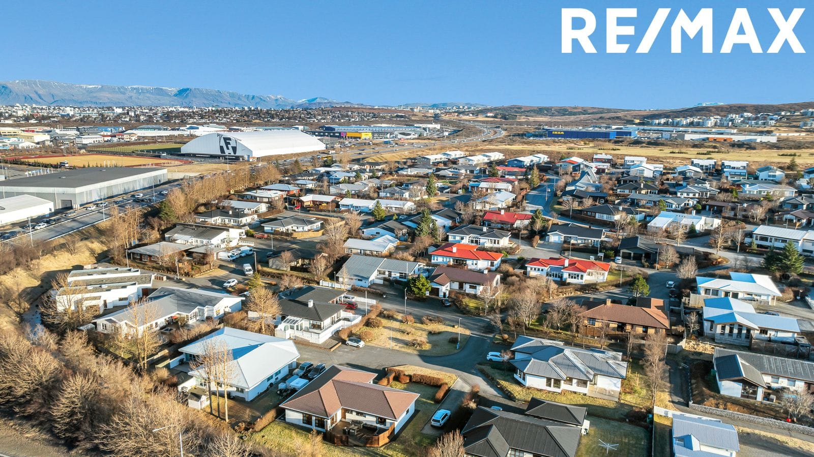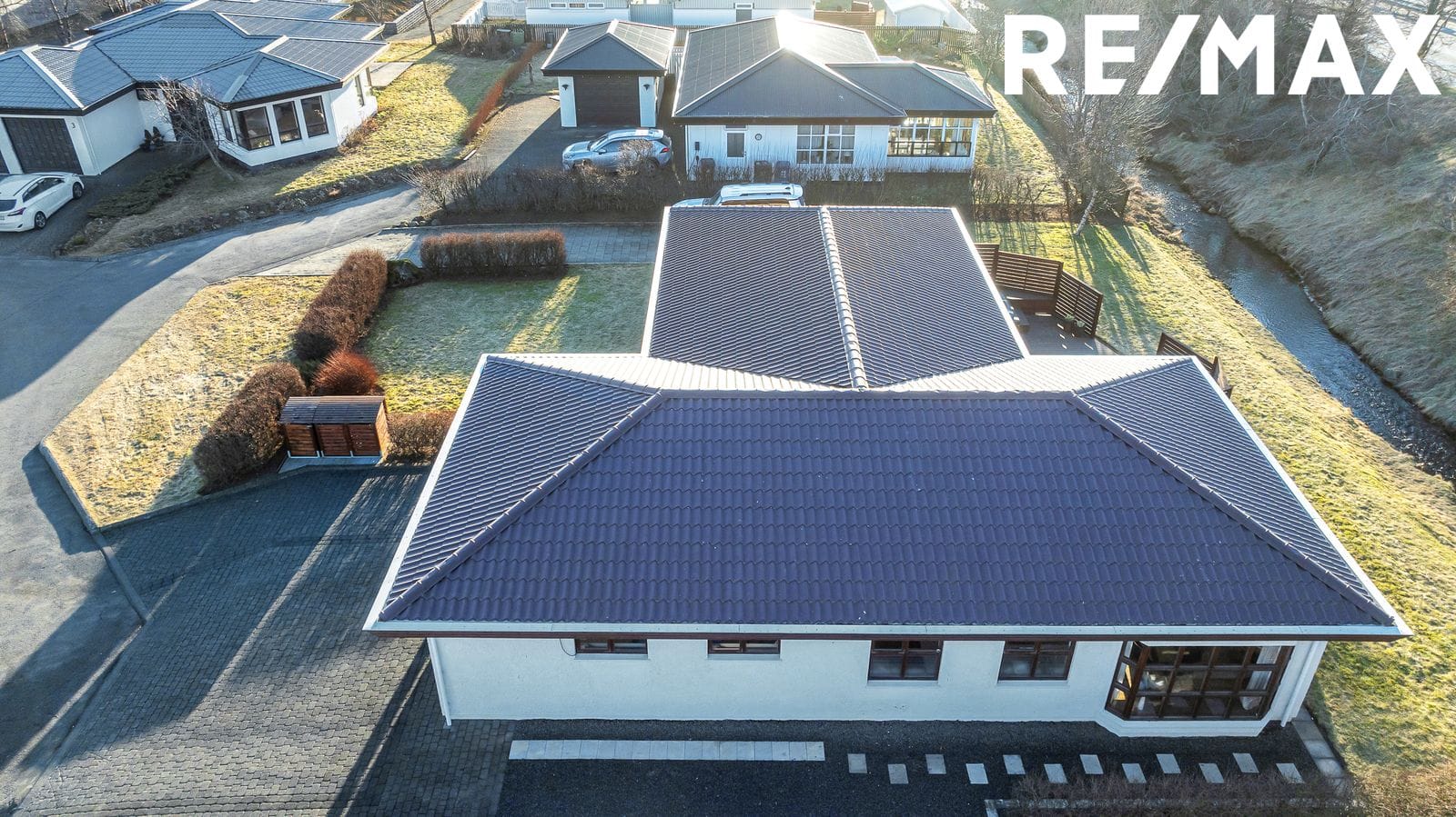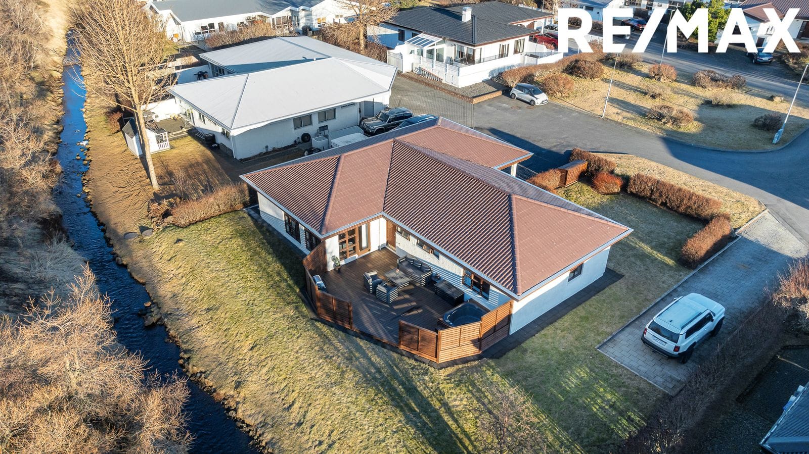 Einstök eign, afar vel staðsett innst inni í botnlanga, góð innkeyrsla með hita í plani og önnur stór innkeyrsla hellulögð.