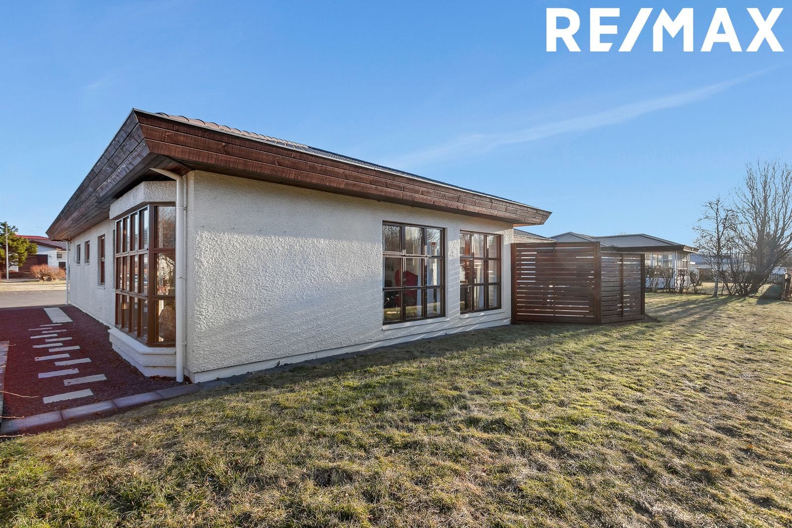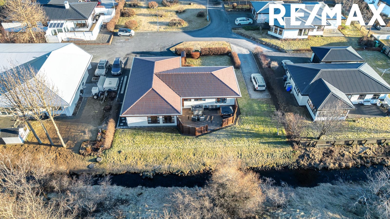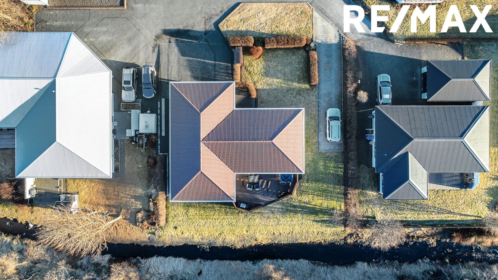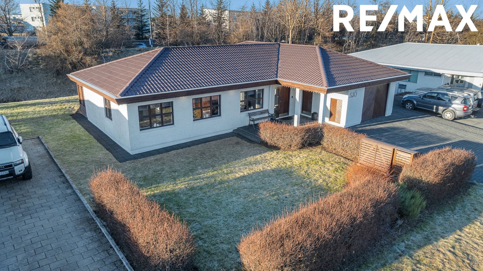 Einstök eign, afar vel staðsett innst inni í botnlanga, góð innkeyrsla með hita í plani og önnur stór innkeyrsla hellulögð.