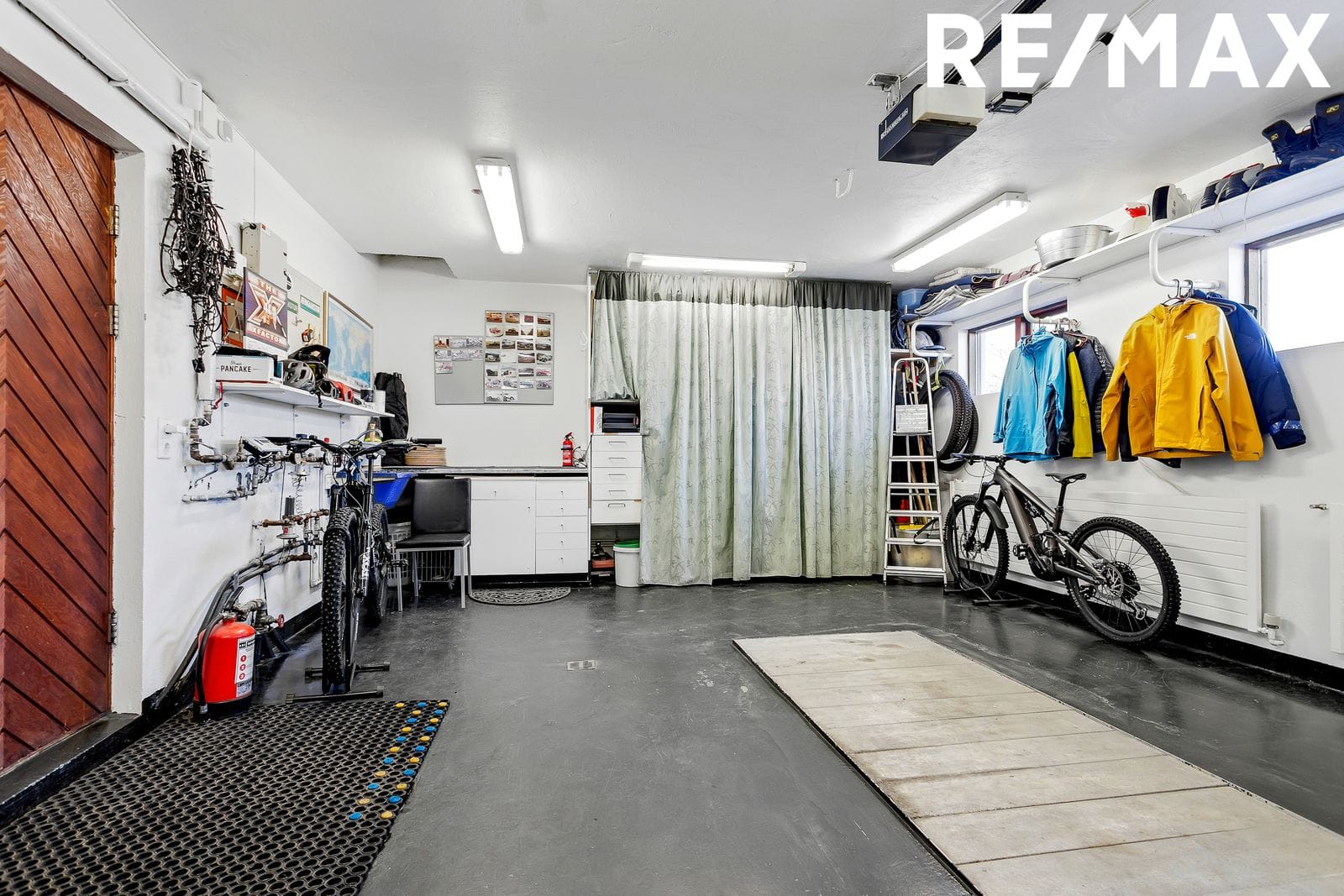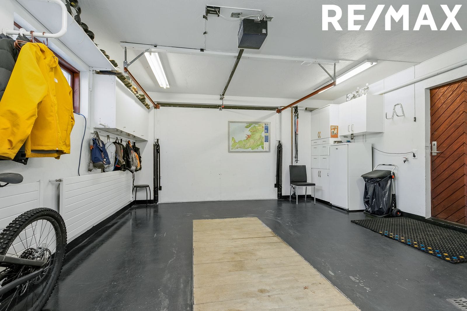 Bílskúrinn er rúmgóður og bjartur með grifju .