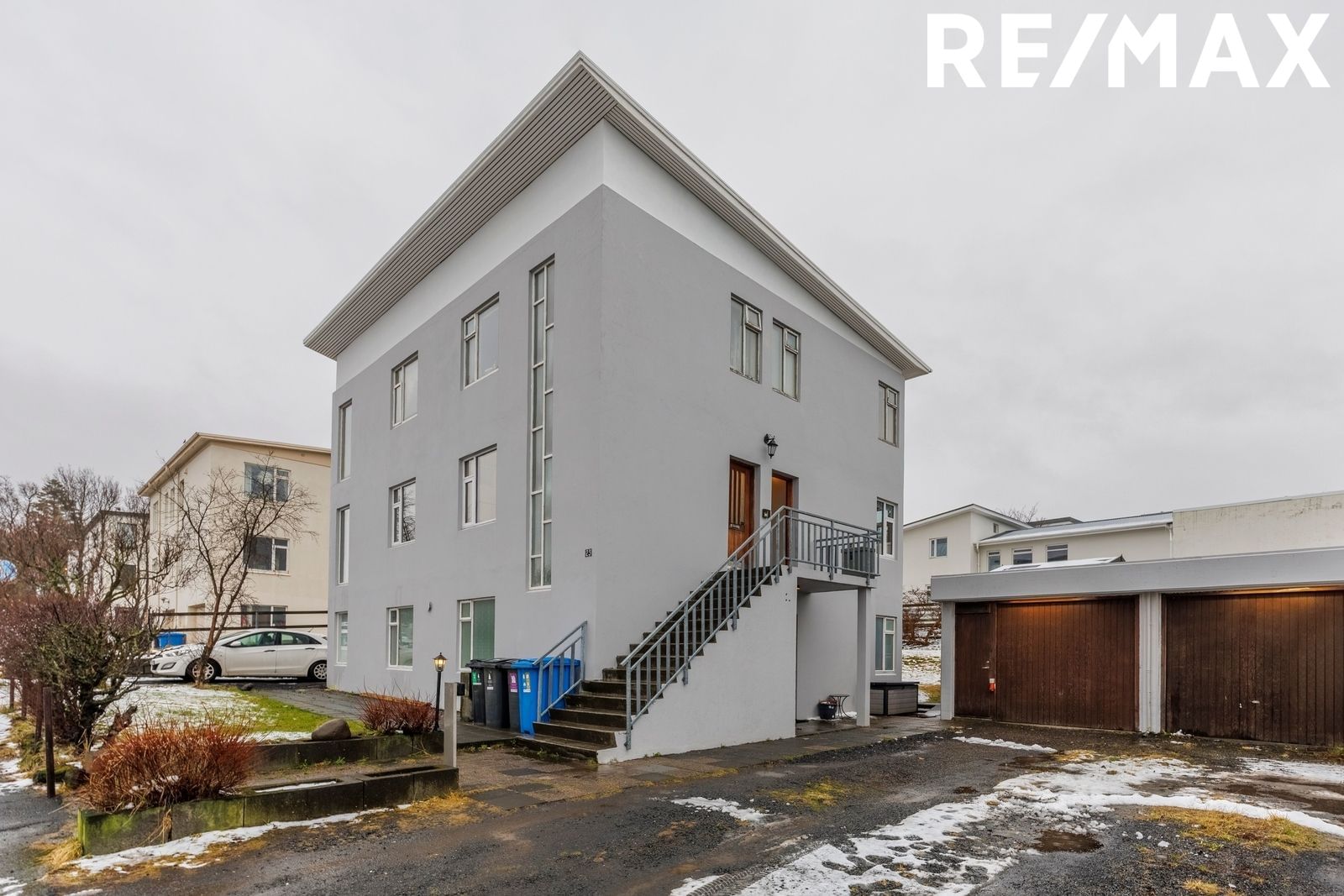 Sameiginlegur gróinn bakgarður. Bílskúr: 30m2 rúmgóður sér bílskúr, heitt og kalt vatn, gluggar og hurð, góð lofthæð 3ja fasa rafmagn. Möguleiki á að útbúa íbúð í bílskúr.