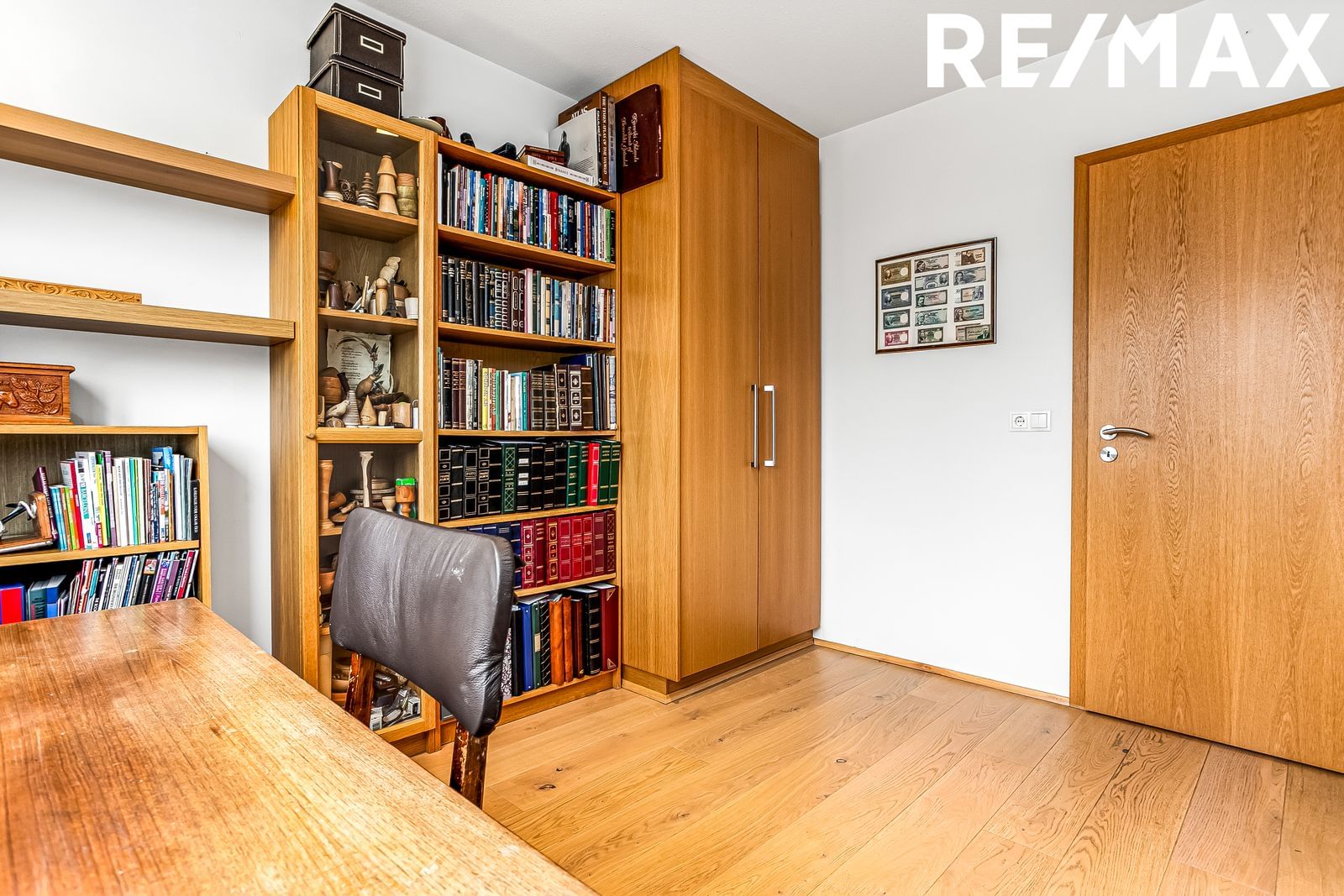 Hjónaherbergi: Rúmgott með parket á gólfi og fataskáp.