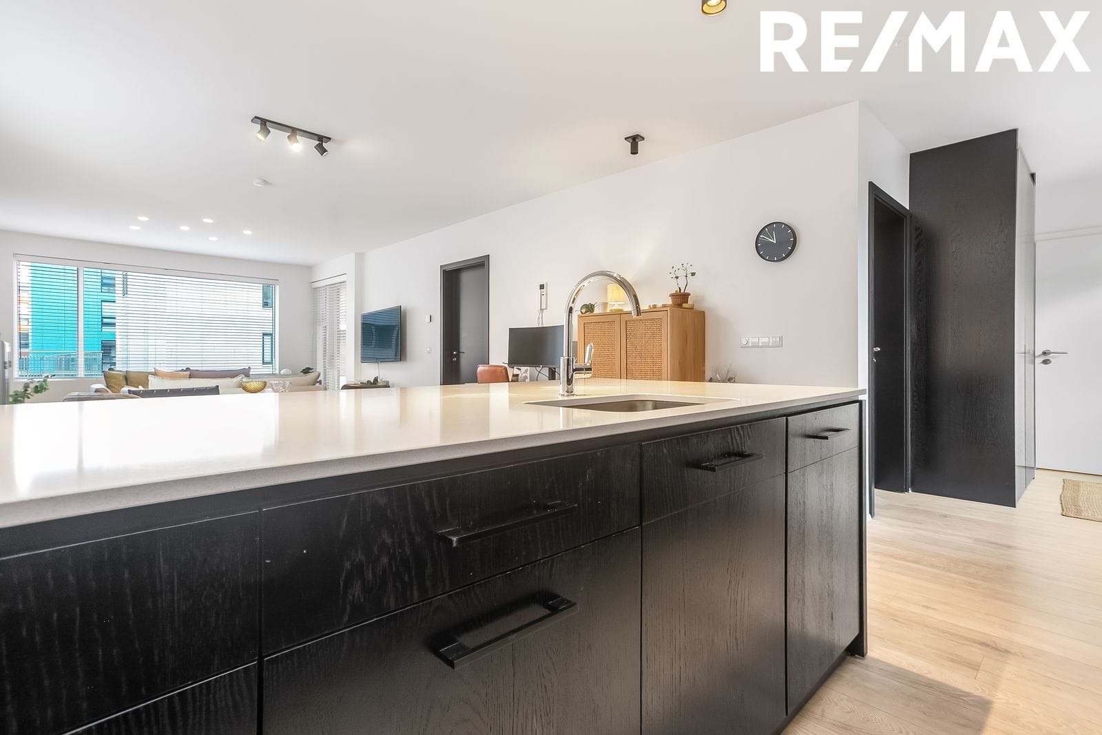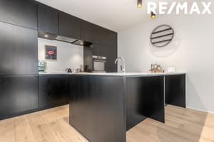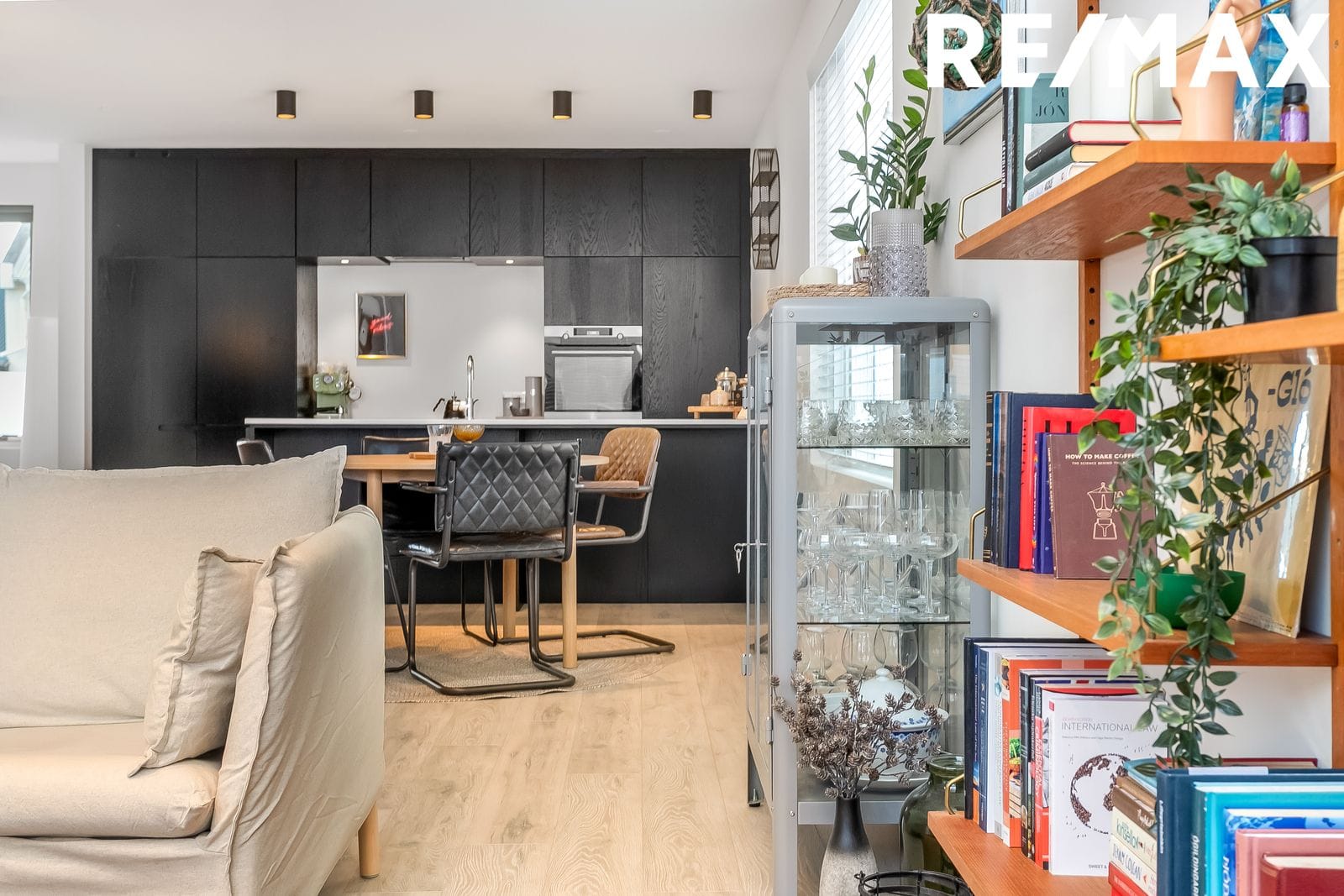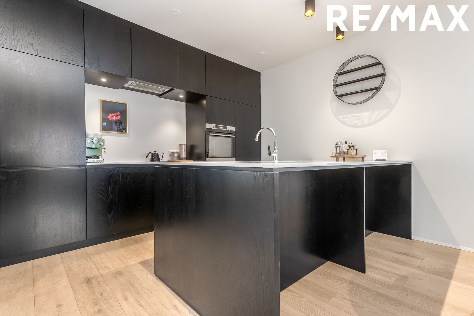 Eldhús: er opið með sérsmíðuðum innréttingum upp að lofti, öll tæki eru frá viðurkenndum aðila. Ísskápur, spanhelluborð, ofn og uppþvottavél eru öll frá AEG. Stór eyja með miklu borðplássi. Hvítur kvartssteinn er á yfirborði eldhússins.