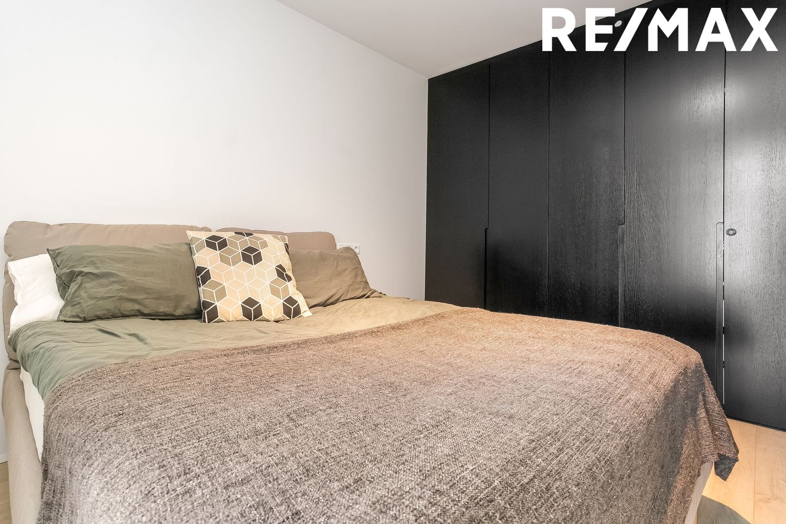 Svefnherbergi: er rúmgott 12.2 fm með sérsmíðuðum fataskápum sem ná upp að lofti og gólfsíðum glugga sem veita mikla birtu.