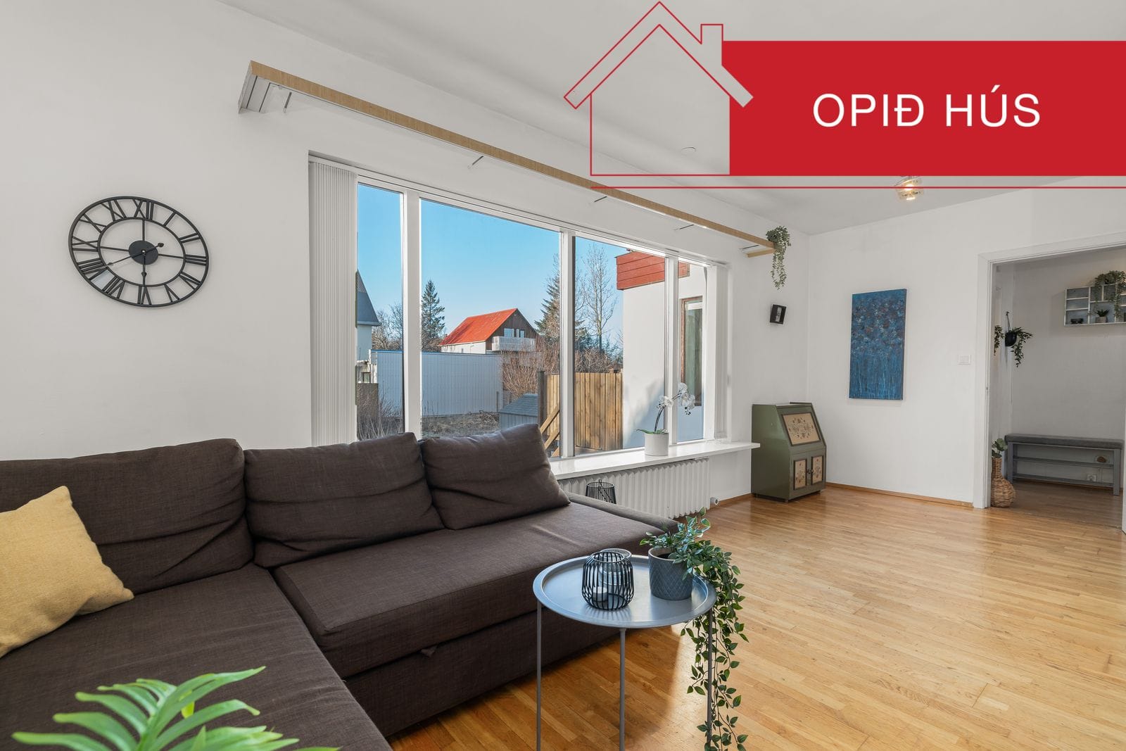 >>SÆKTU SJÁLFVIRKT SÖLUYFIRLIT HÉR<< >>SKOÐAÐU EIGNINA BETUR Í ÞRÍVÍDD MEÐ OG ÁN HÚSGAGNA HÉR<<NÚVERANDI SKIPULAG:Aðalhæð: Forstofa, hol, stigi, stofa, borðstofa, 1x herbergi (áður hluti af stofunni), eldhús, svalir með útgengi út í garð, gestasalerni. Stigi
