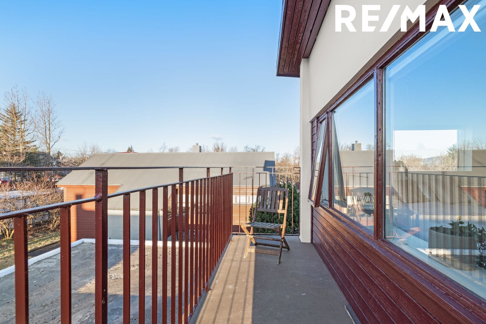 Herbergi 2: Rúmgott með gluggum endilangt og svalahurð á einum vegg og einnig glugga á gafli húss. Góðar svalir með járnhandriði út frá herberginu. Þrefaldur skápur.