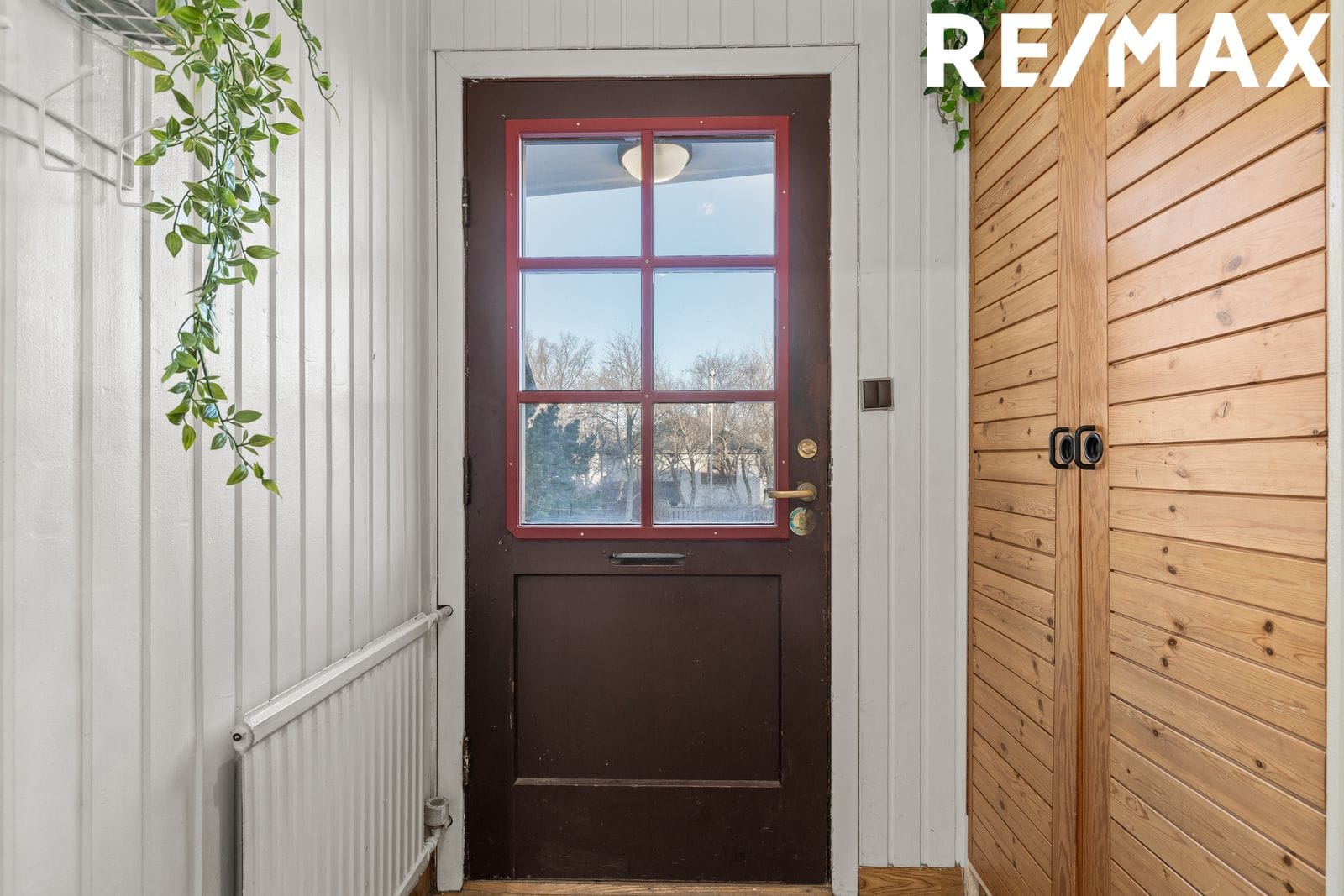 Aðalhæð:Forstofa: Útidyrahurð með gluggum á hurð sem veitir birtu inn. Skápur með viðarhurðum fyrir yfirhafnir. Hvítmálaður panill á veggjum, hitaveituofn.Parketdúkur.