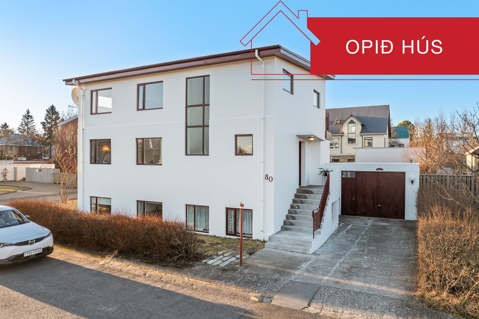 Guðbjörg Helga og Gylfi Jens hjá RE/MAX kynna: Skipasund 80, 104 RVK. Reisuleg sjö herbergja fjölskyldueign á tveimur hæðum sem hentar stórri fjölskyldu. Íbúðarrýmið er á tveimur efstu hæðunum en innangengt er niður stiga að geymslurými á jarðhæð, þar sem einnig er þvottahús og inngangur í nágrannaíbúðina á jarðhæð. Eigninni fylgir bílskúr og einkabílastæði á lóð.