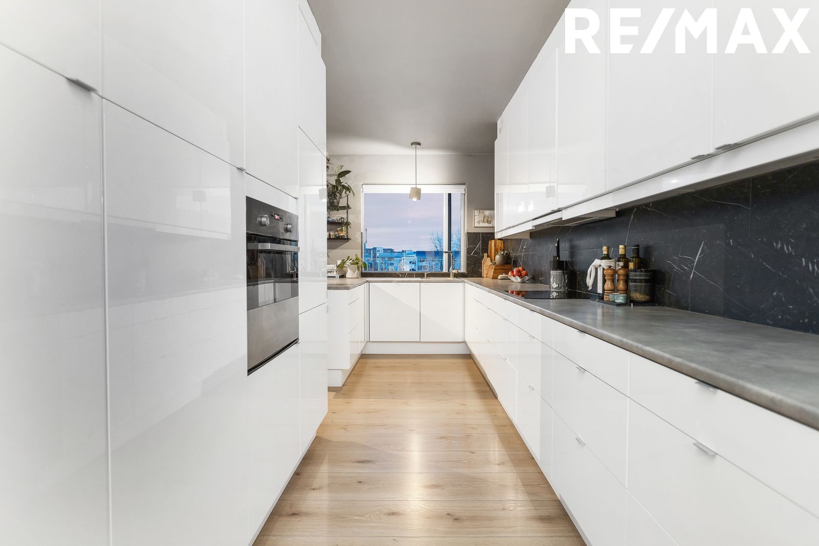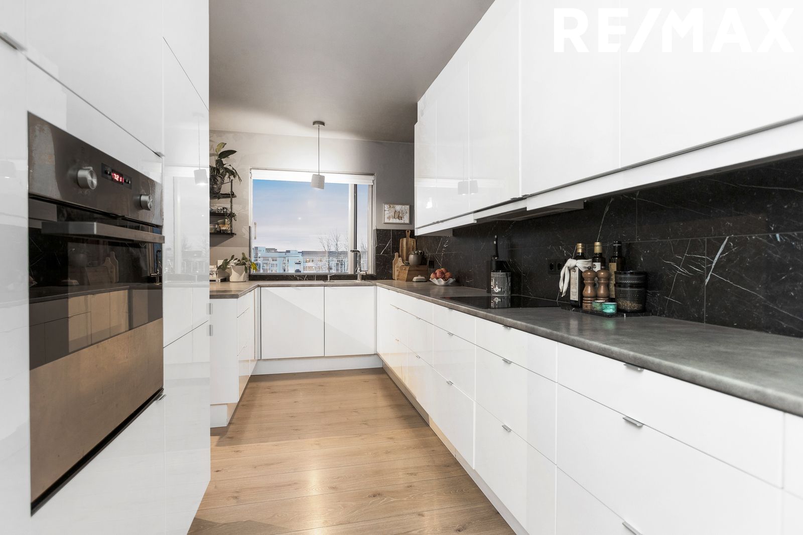 Eldhús: Parket á gólfi, mjög gott skápa- og borðpláss, innfelld uppþvottavél, innfelldur ísskápur, ofn í vinnuhæð, helluborð og gufugleypir.