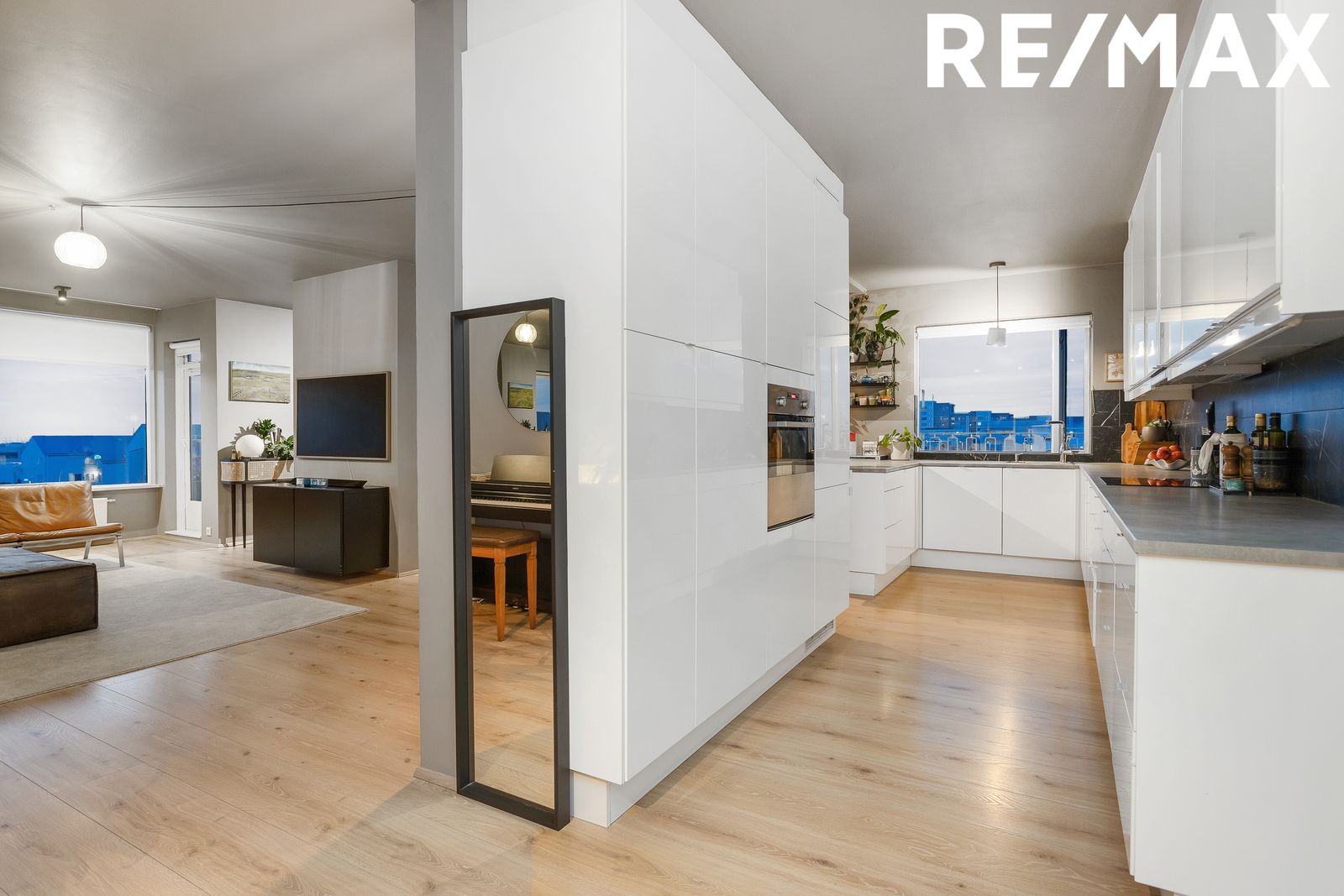 Fallega, bjarta og mikið endurnýjaða fimm herbergja endaíbúð á 3. hæð með glæsilegu útsýni að Meistaravöllum 5.