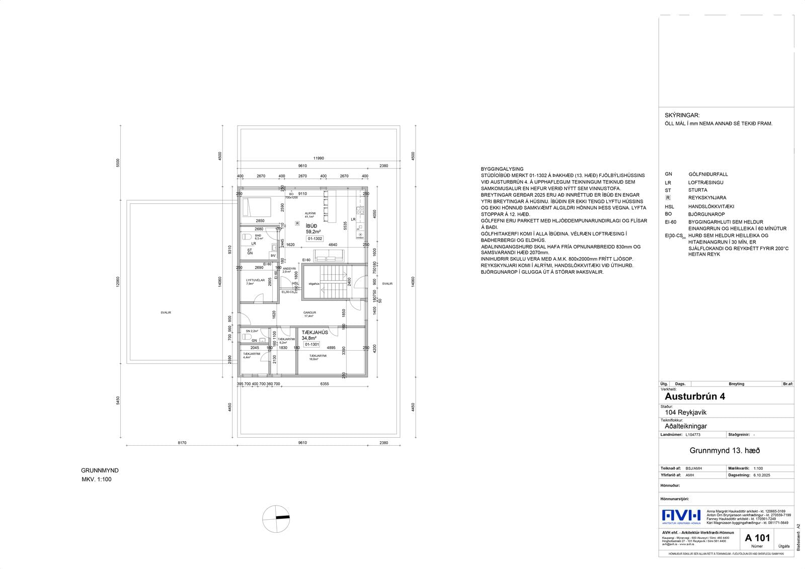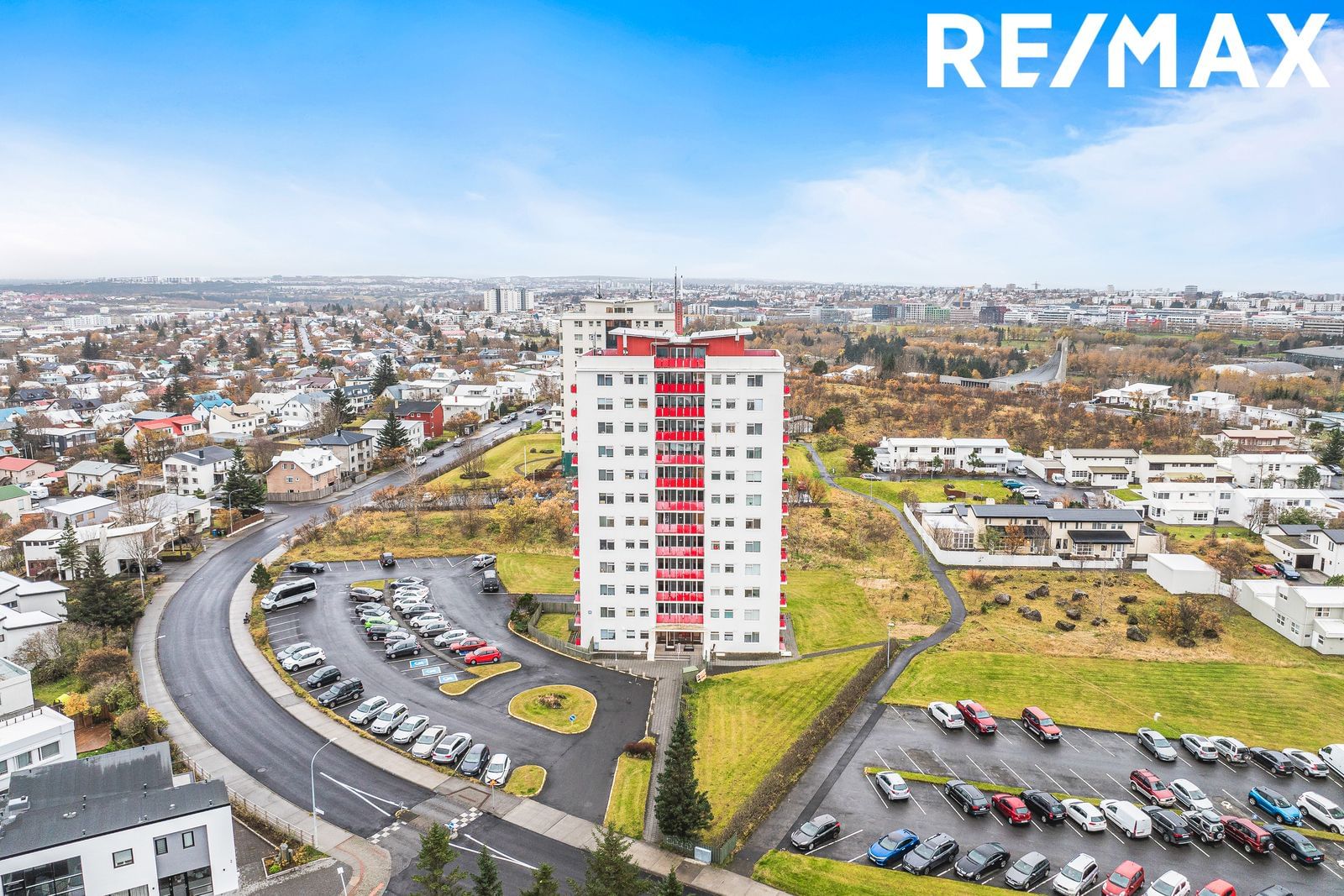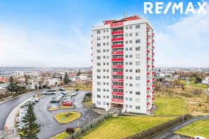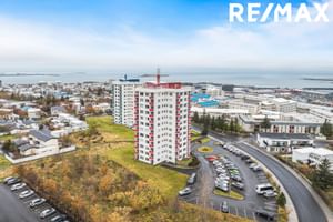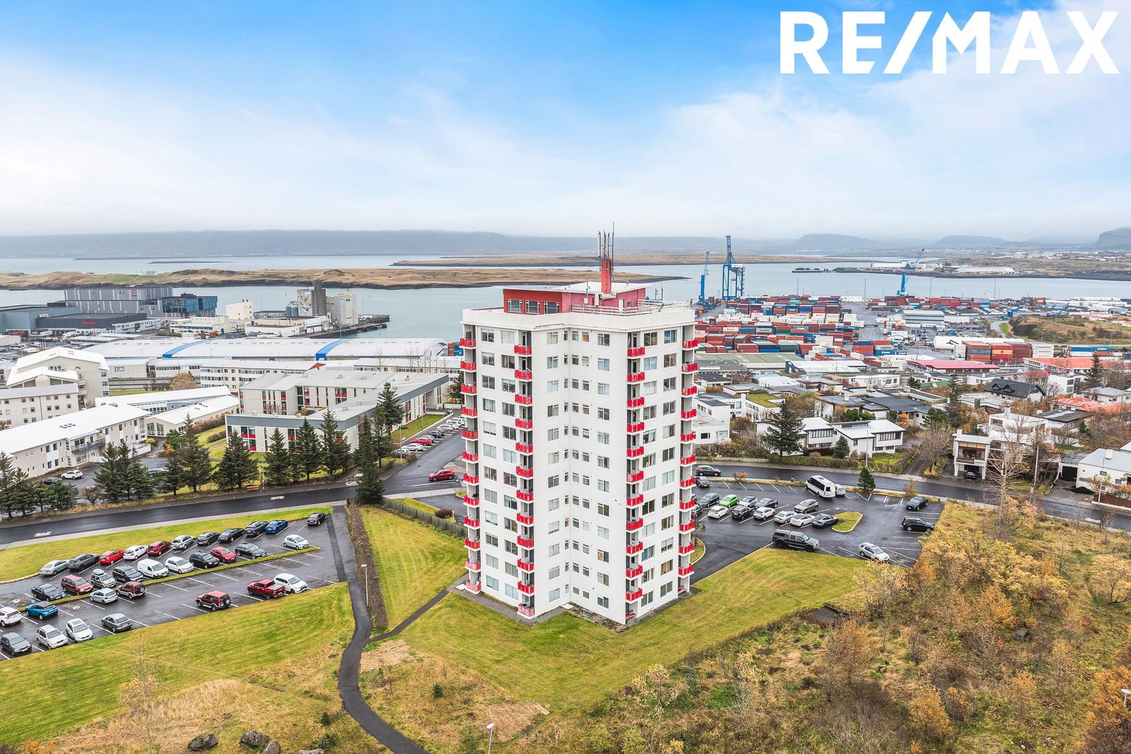 Nánari lýsing: Lyfta hússins gengur upp á 12. hæð hússins, þaðan er farið inn í sameiginlegan stigagang af svölum sem liggur upp á 13. hæð (efstu). Eignin er eina íbúðarrýmið á hæðinni og er verið að standsetja sem íbúð. Þaksvalir eru sameign en samkvæmt seljanda lítið sem ekkert notað af öðrum í húsinu,