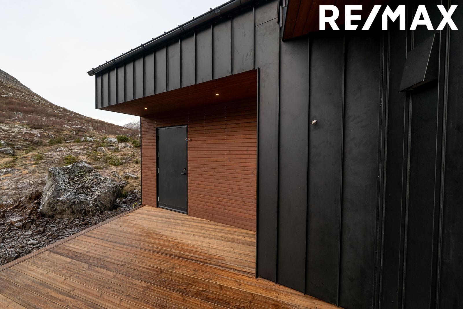 Utanhússklæðning á veggjum og þaki er dökk læst járnklæðning. Gluggar eru úr timbri, dökkir að utan og hvíttaðir að innan. Byggingin verður með rafhitun, upphitun með vatnsbornum gólfhita. Timburpallar eru við húsið á tvo vegu.