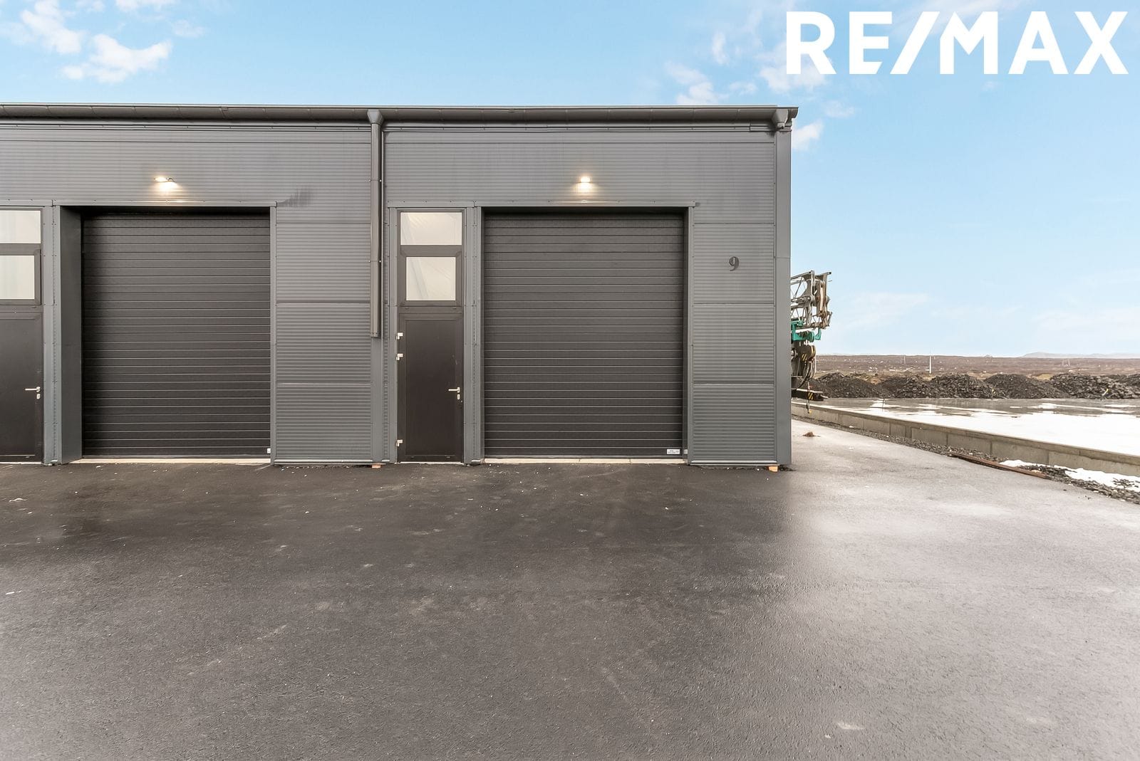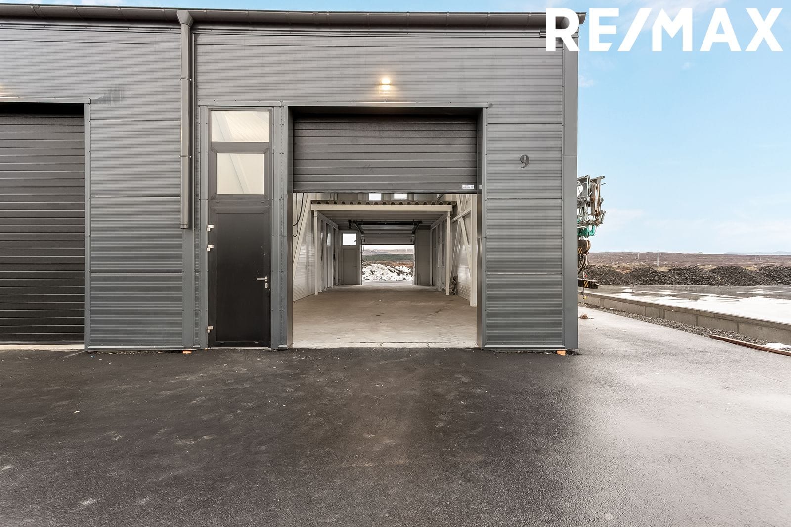 Ein gönguhurð, tvær innkeyrsluhurðar eru 3,0 m á breidd og er önnur hurðin 3,7 m á breidd og hin 3,1 með rafmagnsofnun.