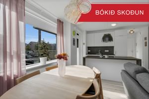 Frekari lýsing á eign: Anddyri; Gengið er inn um parketlagt anddyri með tvöföldum fataskáp. Stofa, borðstofa; Er í opnu rúmgóðu rými með útgengi út á góðar svalir. Parket á gólfi. Eldhús; Eldhúsinnrétting með ljósri borðplötu og vönduðum eldhústækjum. Innbyggður ísskápur og uppþvottavél fylgja með. Eldhúseyja með háf og helluborði. Parket á gólfi. Svefnherbergi; Herbergi með parket á gólfi og tvöföldum fataskáp. Hjónaherbergi; Rúmgott herbergi með stórum fataskáp og parket á gólfi. Þvottarými; Sér þvottahús. Skápur og tengi fyrir þvottavél og þurrkara. Flísar á gólfi. Björt og vel skipulögð þriggja herbergja íbúð í nýlegu húsi miðsvæðis í Reykjavík. Með stæði í lokuðum bílakjallara ásamt góðri geymslu í kjallara.