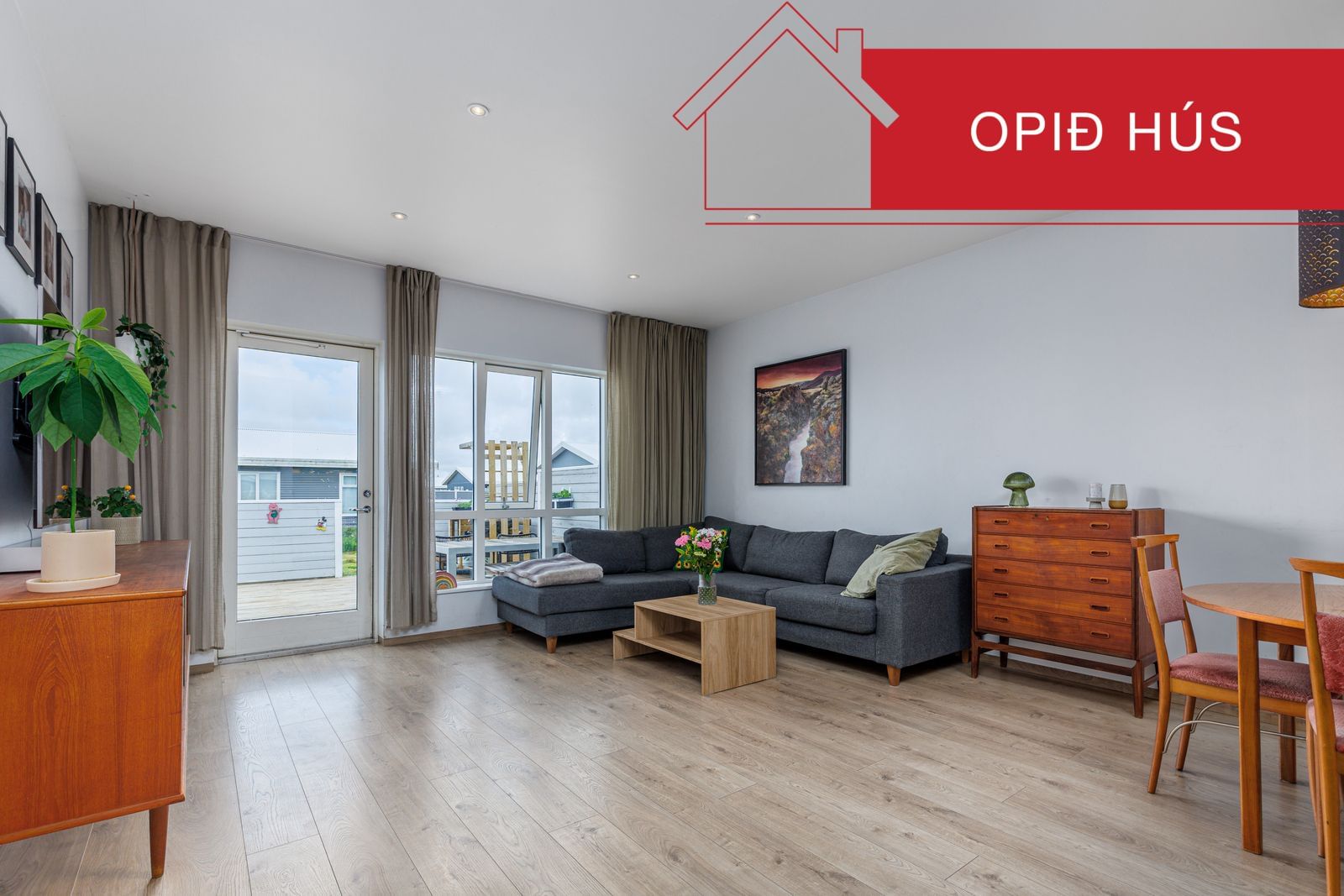 Stofa/borðstofa: Parket á gólfi. Útengt á góðan sólpall með skjólveggjum og heitum potti sem snýr til suð-vesturs.