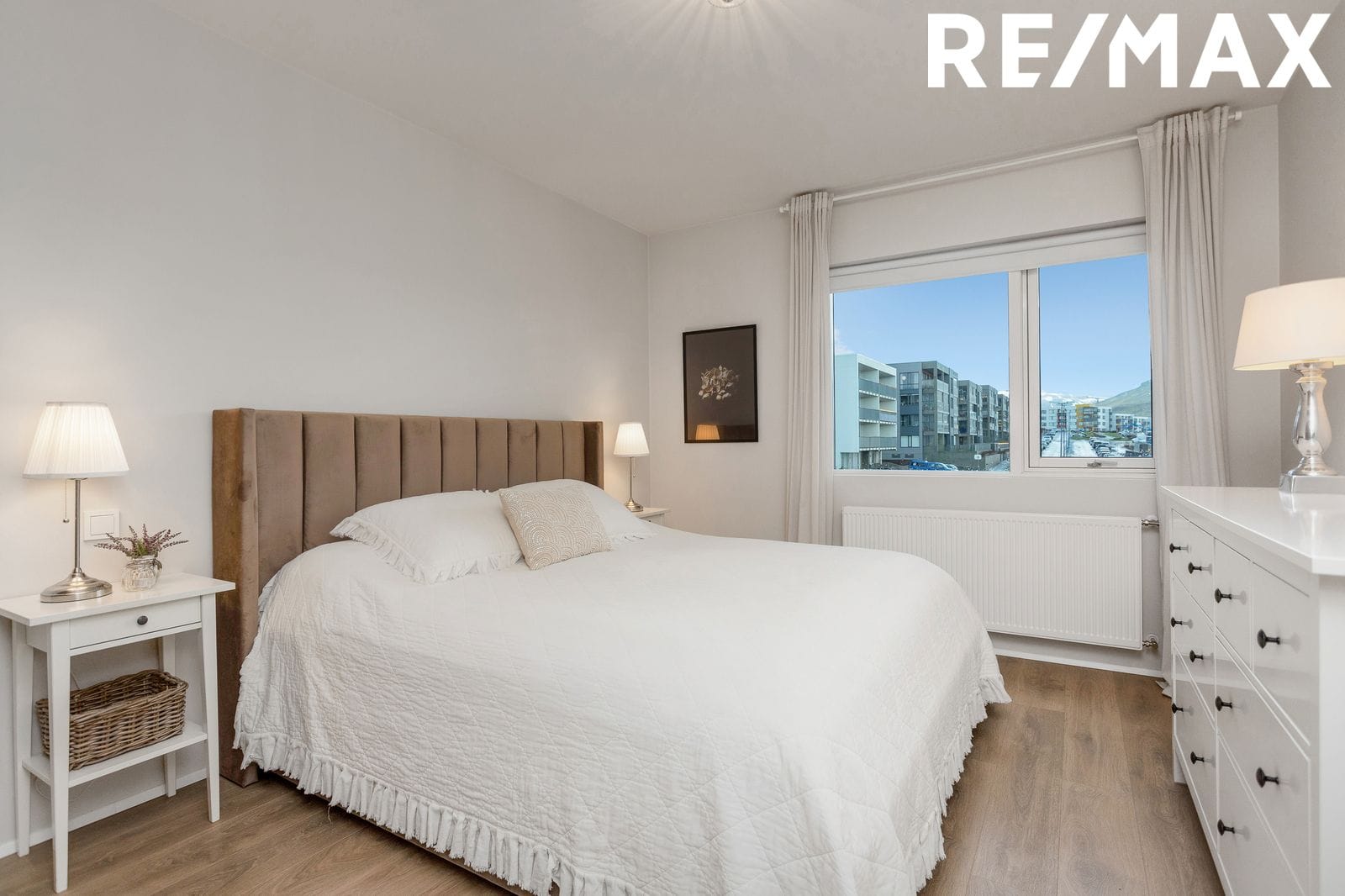 svo einfalt er að breyta og bæta við þriðja svefnherberginu.Svefnherbergin eru tvö, bæði mjög rúmgóð og björt með fataskápum.