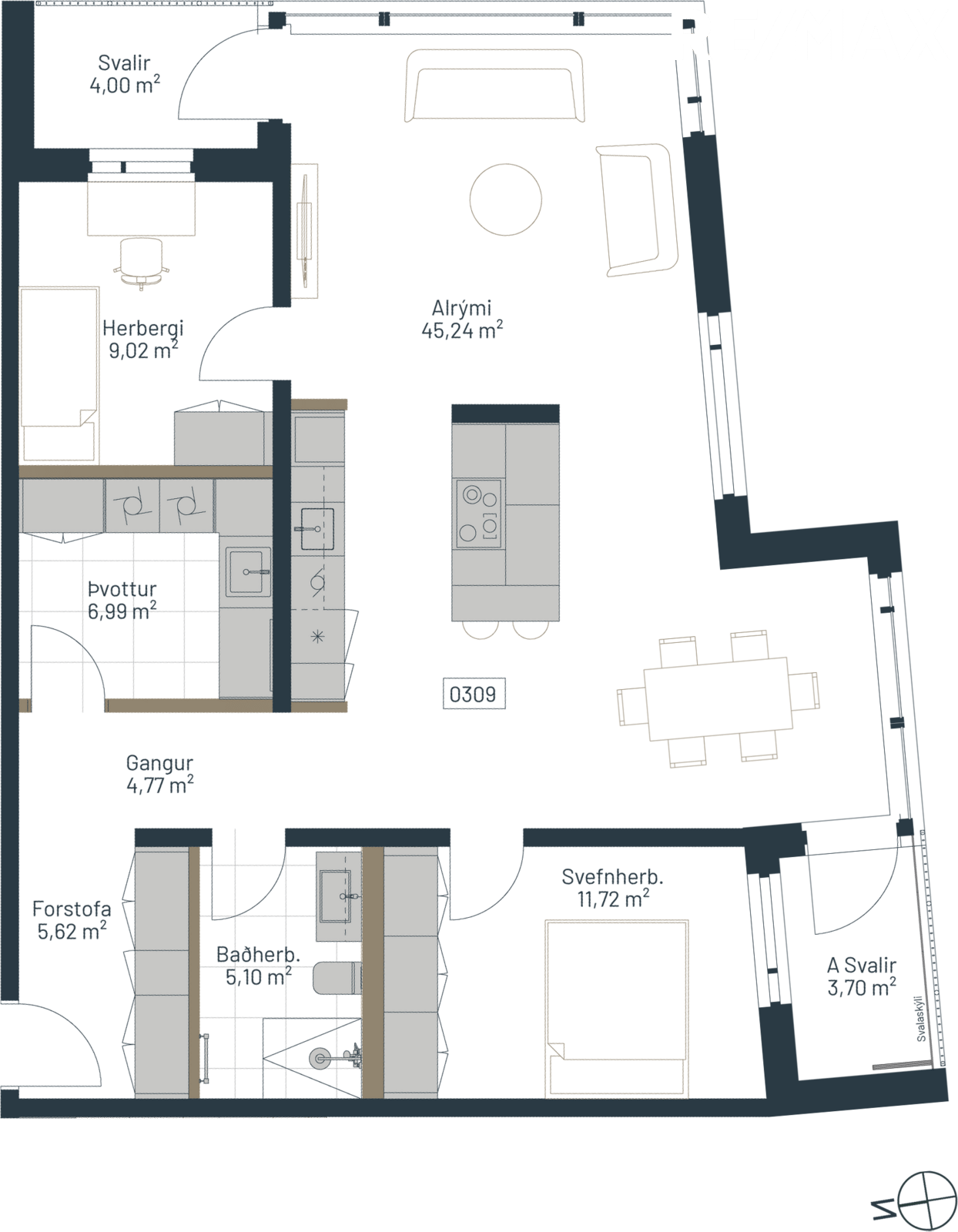 - Sér þvottahús í langflestum íbúðum með veglegum innréttingum