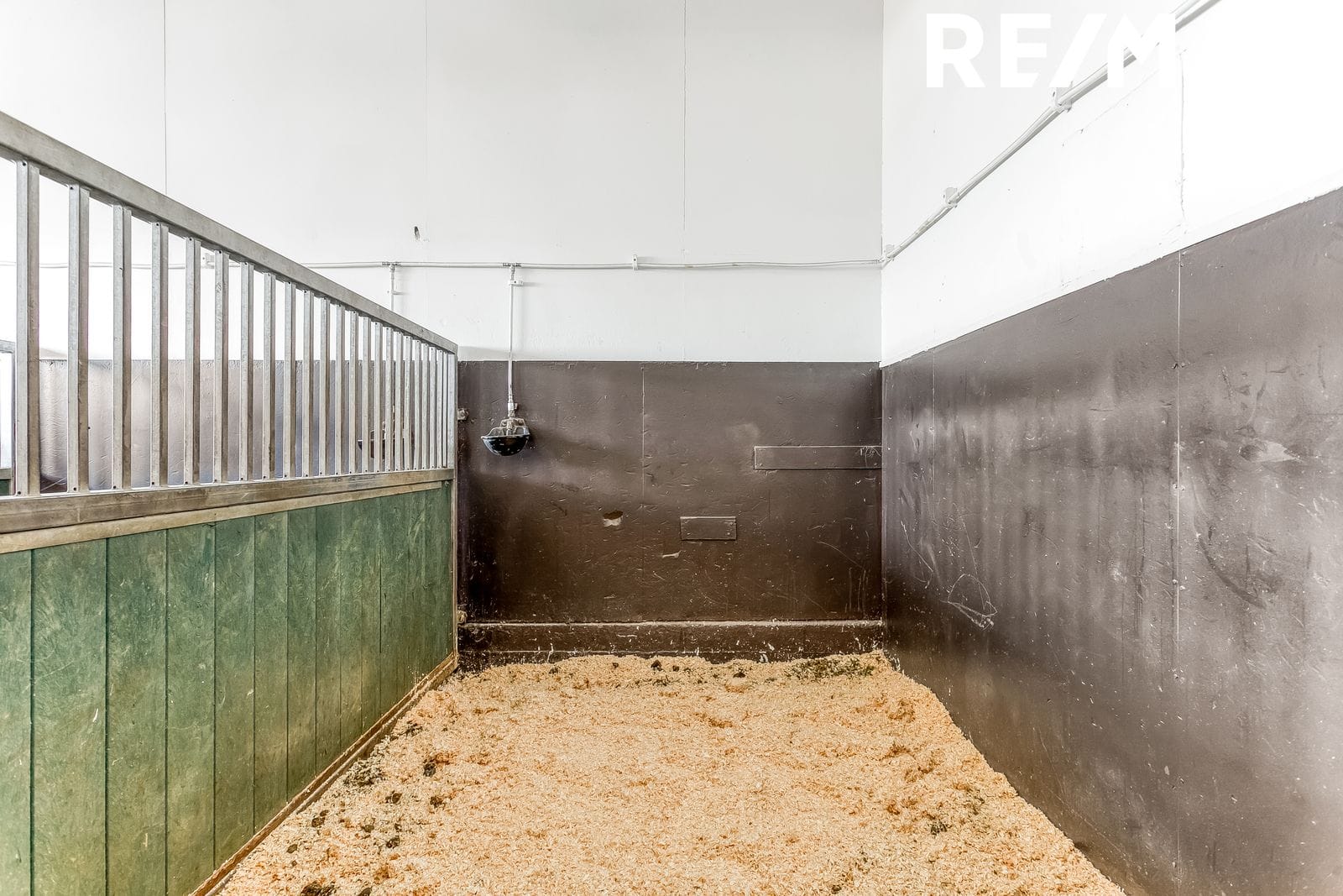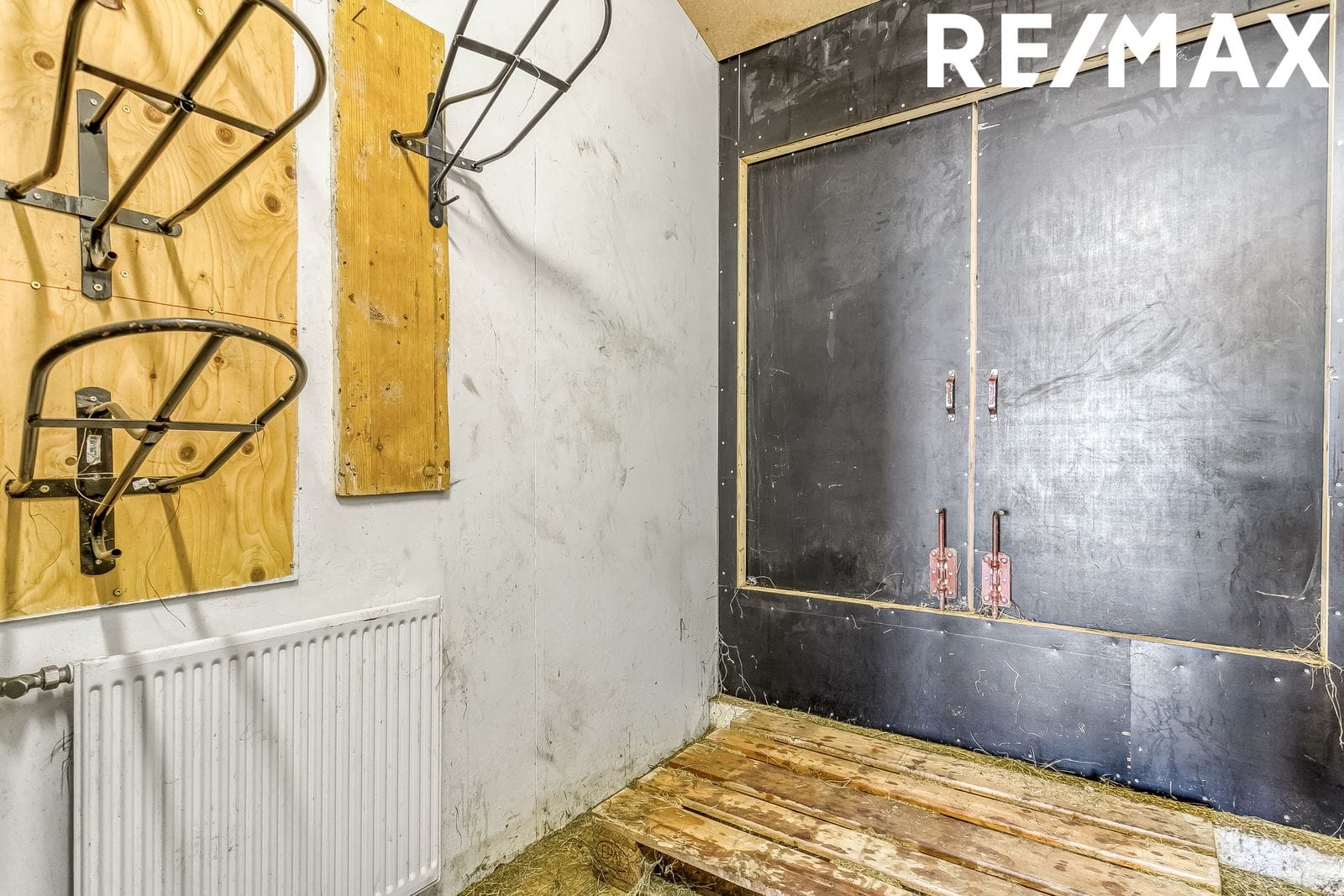 Fín aðstaða er fyrir hnakka og reiðtygi ásamt góðri salernisaðstöðu.  Hlaðan er með stórri hurð þar sem auðvelt er að koma inn heyi.