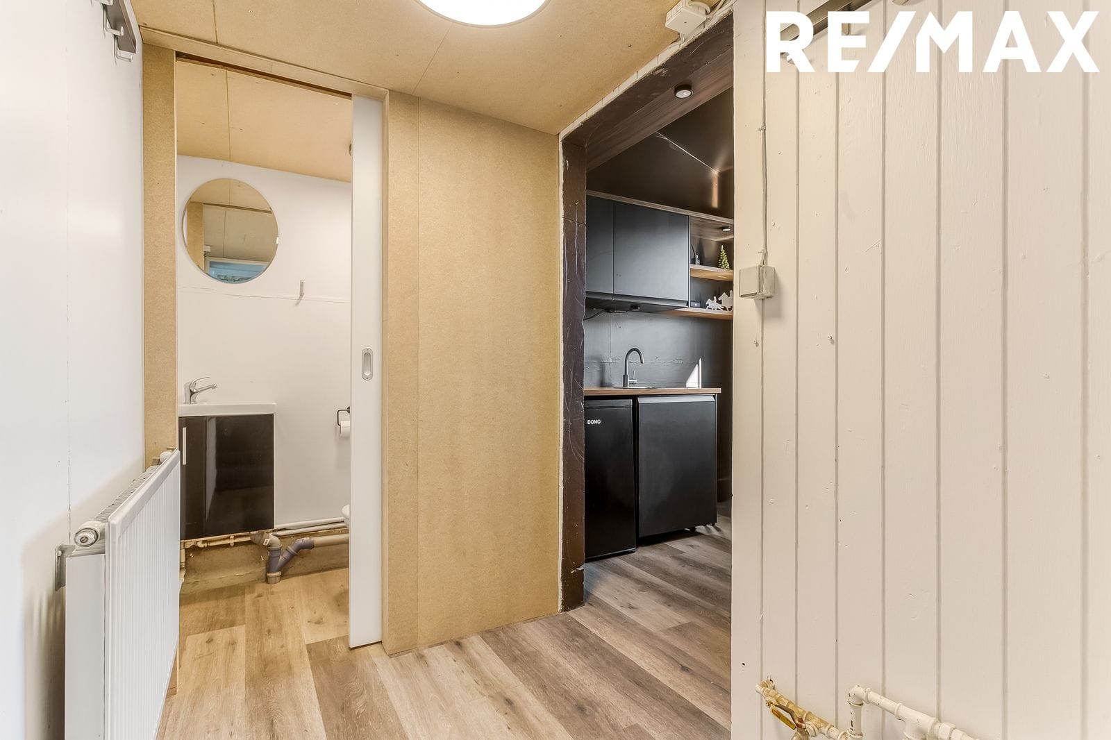 Mjög snyrtileg kaffistofa er í húsinu með glugga út sem hleypir góðri britu inn. Þar er nýleg innrétting með handlaug og góðum skápum. Rúmgóður borðkrókur er á kaffistofunni. Nýlegt parket er á kaffistofu, gangi og salerni.