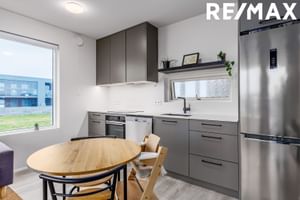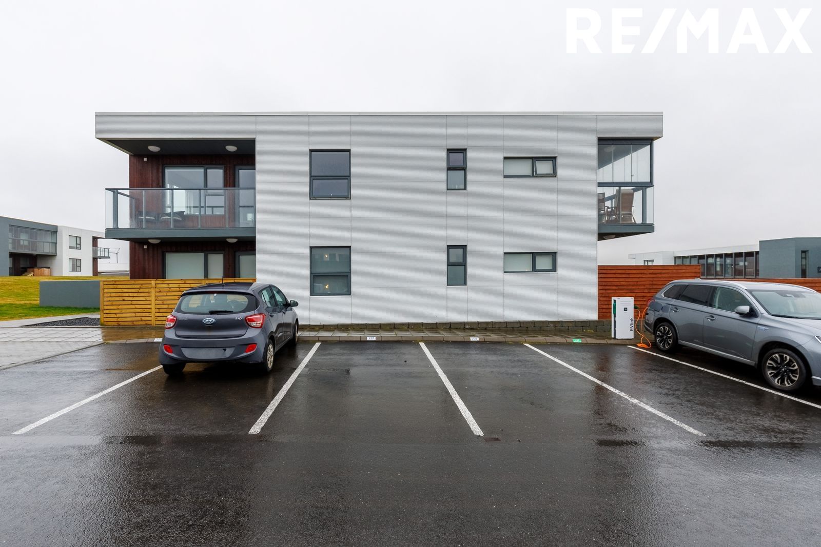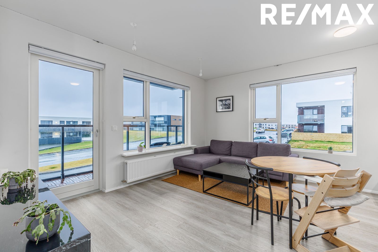 Pétur Ásgeirsson löggiltur fasteignasali hjá RE/MAX fasteignasölu kynnir: Fallega og vel skipulagða 2ja herbergja íbúð á efri hæð í tveggja hæða 15 íbúða fjölbýlishúsi í Njarðvík. Húsið er staðsteypt, einangrað að utan og klætt með bárujárni og lerki klæðningu. Gluggar og útihurð eru úr ál og tré. Hleðslustöð fyrir rafmagnsbíla er við bílastæðin. Sérinngangur er í íbúðina. Húsið er byggt árið 2021.