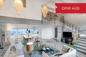 Hér getur þú gengið í gegnum eignina í 3D: Ýtið hér// Mikil lofthæð í alrými.