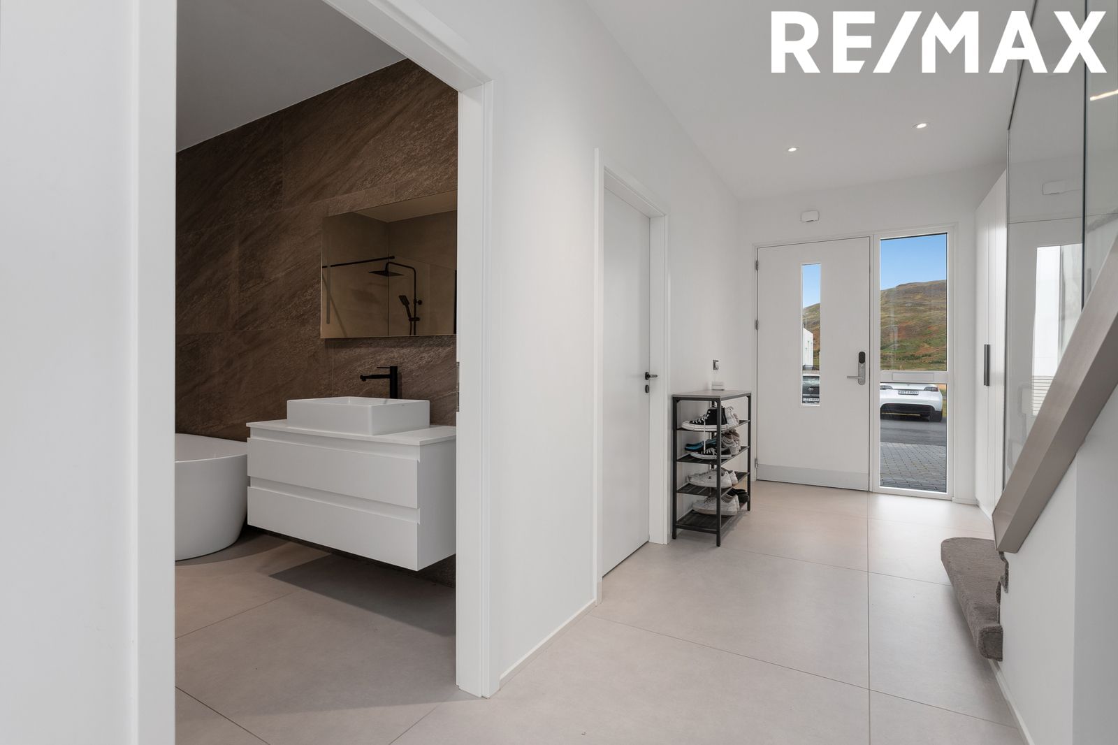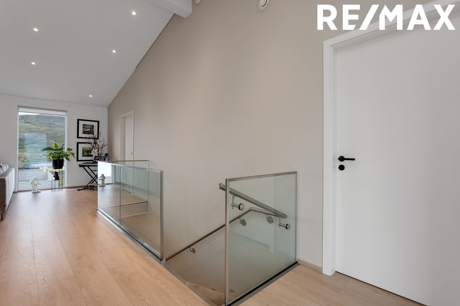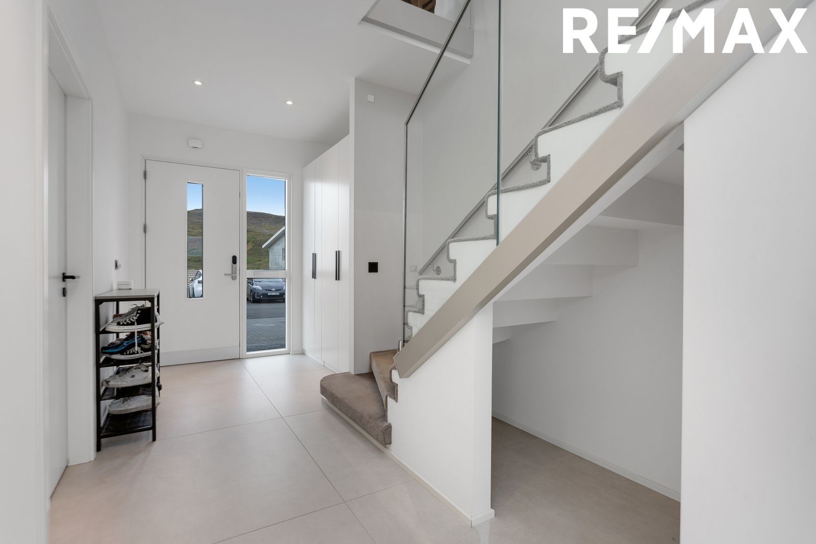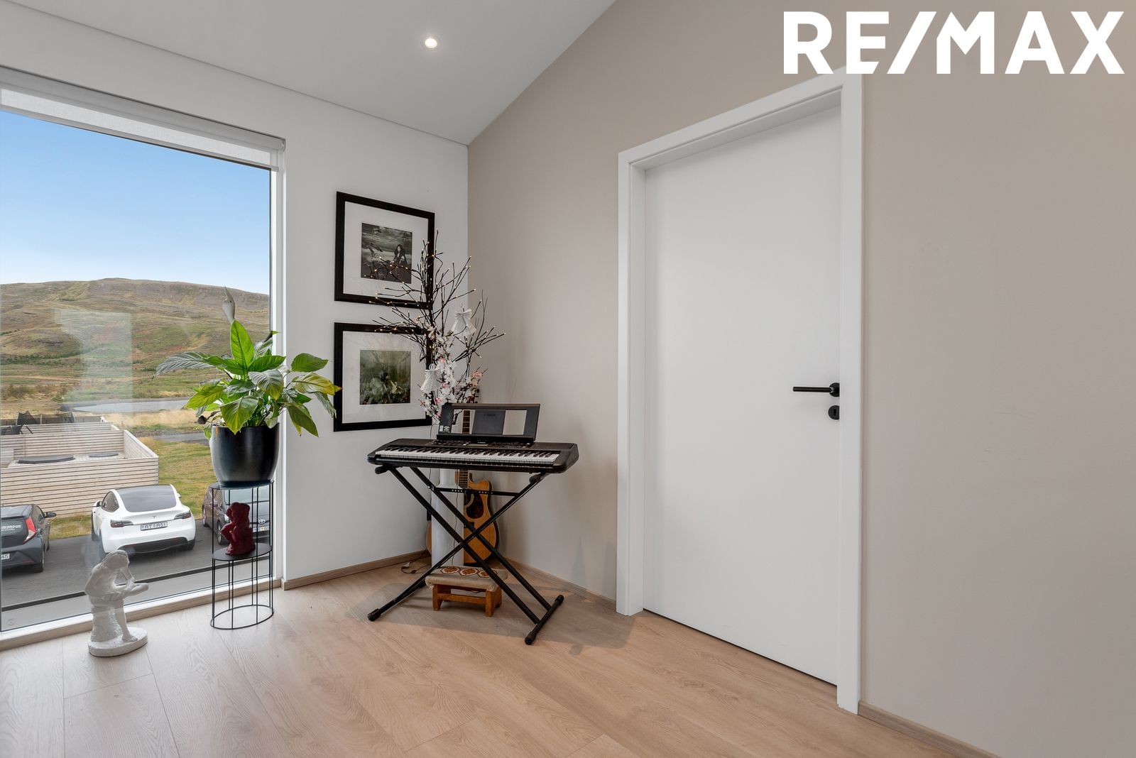 Einstaklega vel skipulagt vistvænt hús. Húsið er á steyptum sökkli,veggir úr Magnumbord OSB gegnheilum timbureiningum, klætt að utan með málmklæðningu að hluta og viðhaldslítilli timburklæðningu að hluta. Tesla hleðslustöð, lyklalaust aðgengi að útidyrum, Pledj ljósastýring.