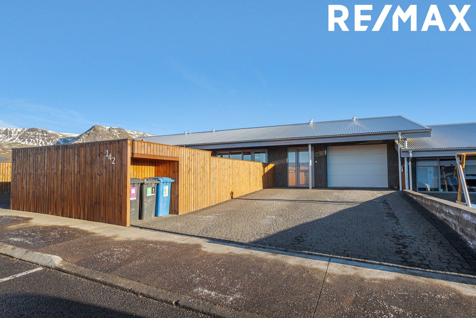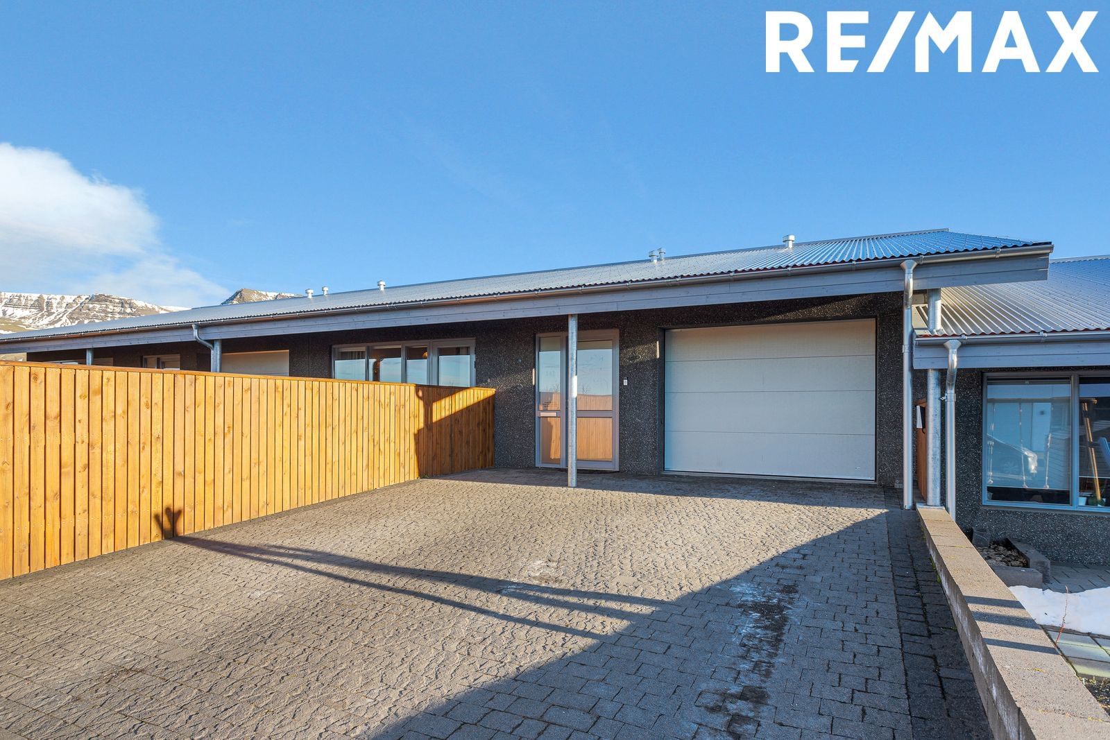 Húsið er steinsteypt einingahús með gólfhitakerfi, einangrað að utan með svargrárri steinsalla veðurkápu. Þak með 1x6 klæðningu og Aluzink 0,6 mm. Útihurð, svalahurð og gluggar eru grámálaðir timbri/áli frá Glerborg. Lausafögin eru með gúmmíþéttingum, lömum með opnunaröryggi og læsingum með næturopnun. Gler er tvöfalt einangrunargler (K-gler) í öllum gluggum. Hurðir með gúmmíþéttingum, 5 punkta læsingu og hurðahúnum.