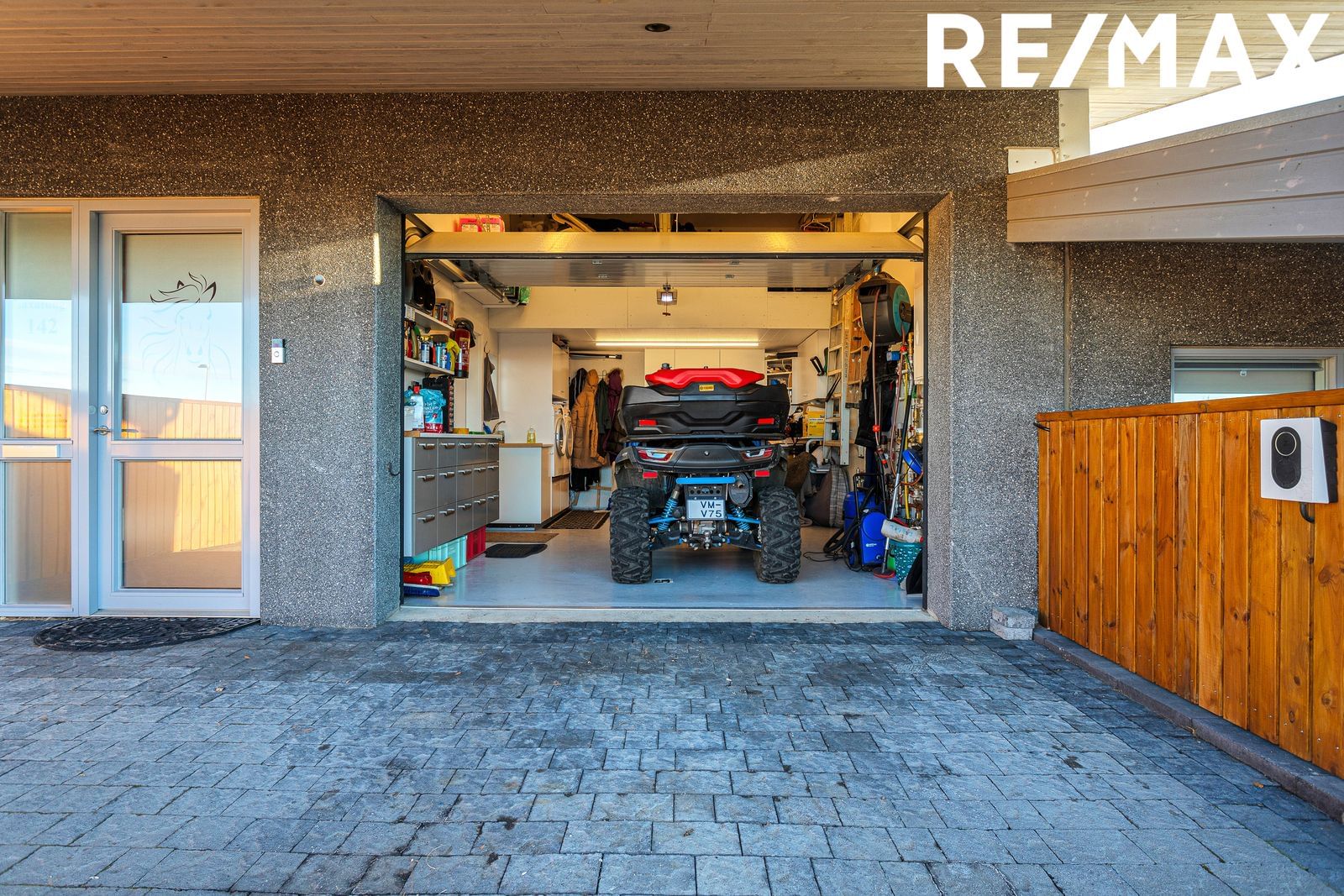 Bílskúr er skráður 24,3 fm., hár til lofts og með góðu geymslulofti. Í