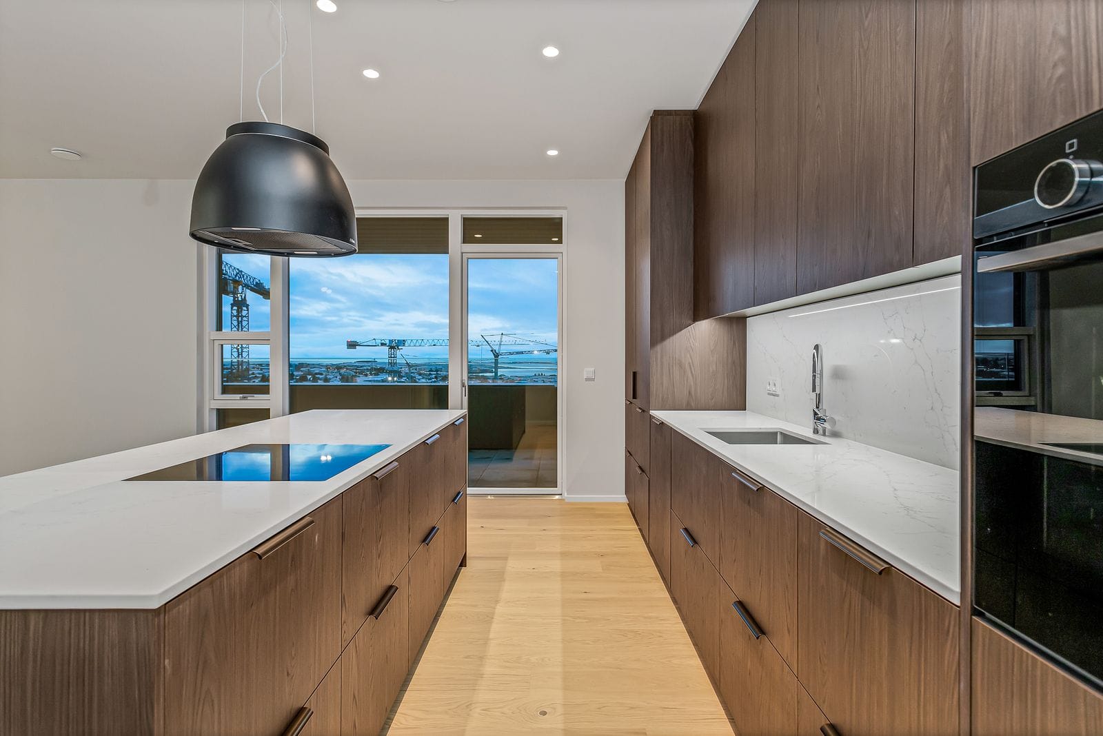 Íbúðir skilast fullbúnar með gólfefnum og með Quartz Lema White borðplötum, bæði inn í eldhúsi og inn á baðherbergjum. Vönduð heimilistæki, innfeld tæki, ísskápur, frystir og uppþvottavél. Baðherbergin eru öll með innbyggðum blöndunartækjum.