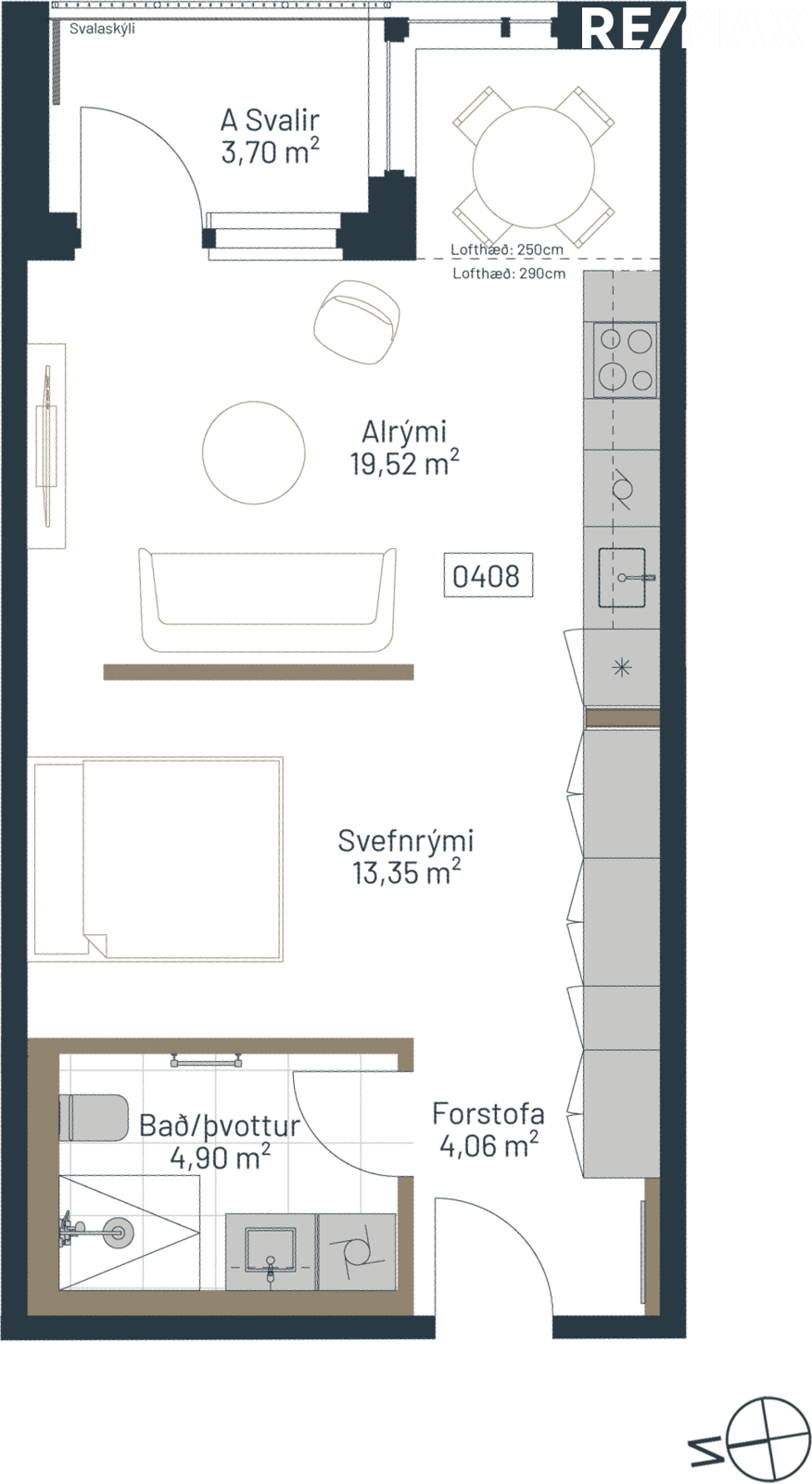 Íbúð 408: Rúmgóð og vel skipulögð eins herbergja,