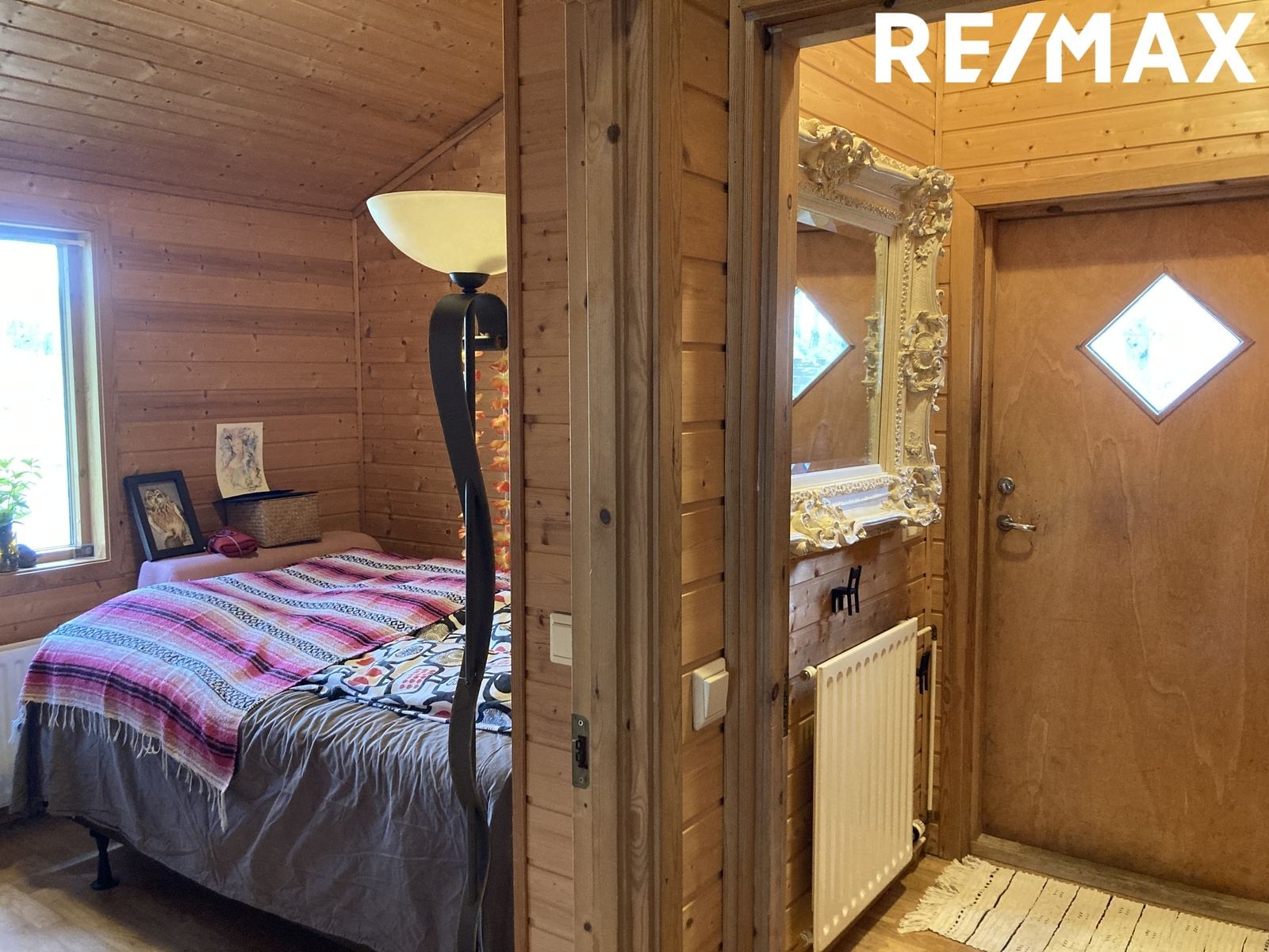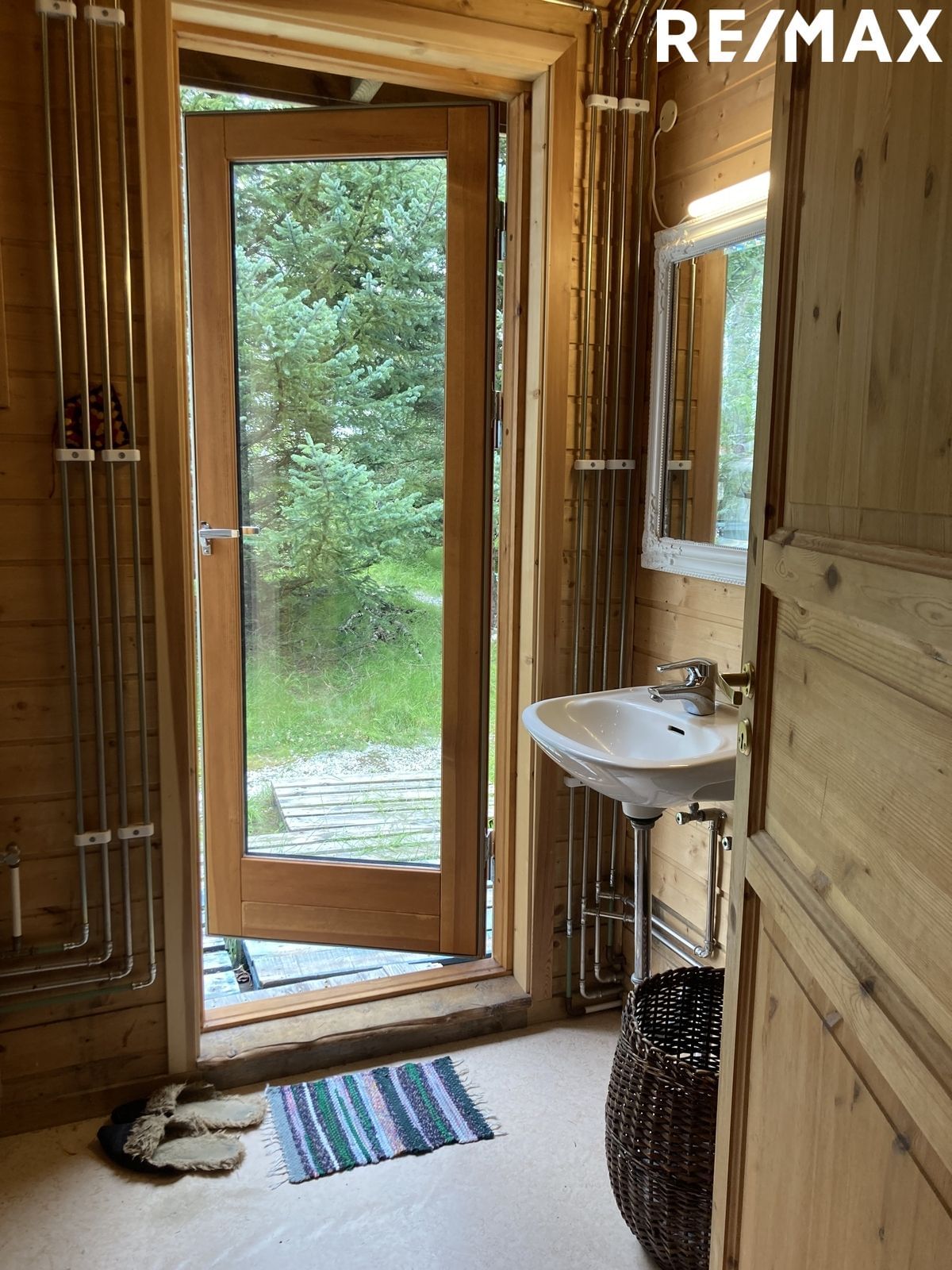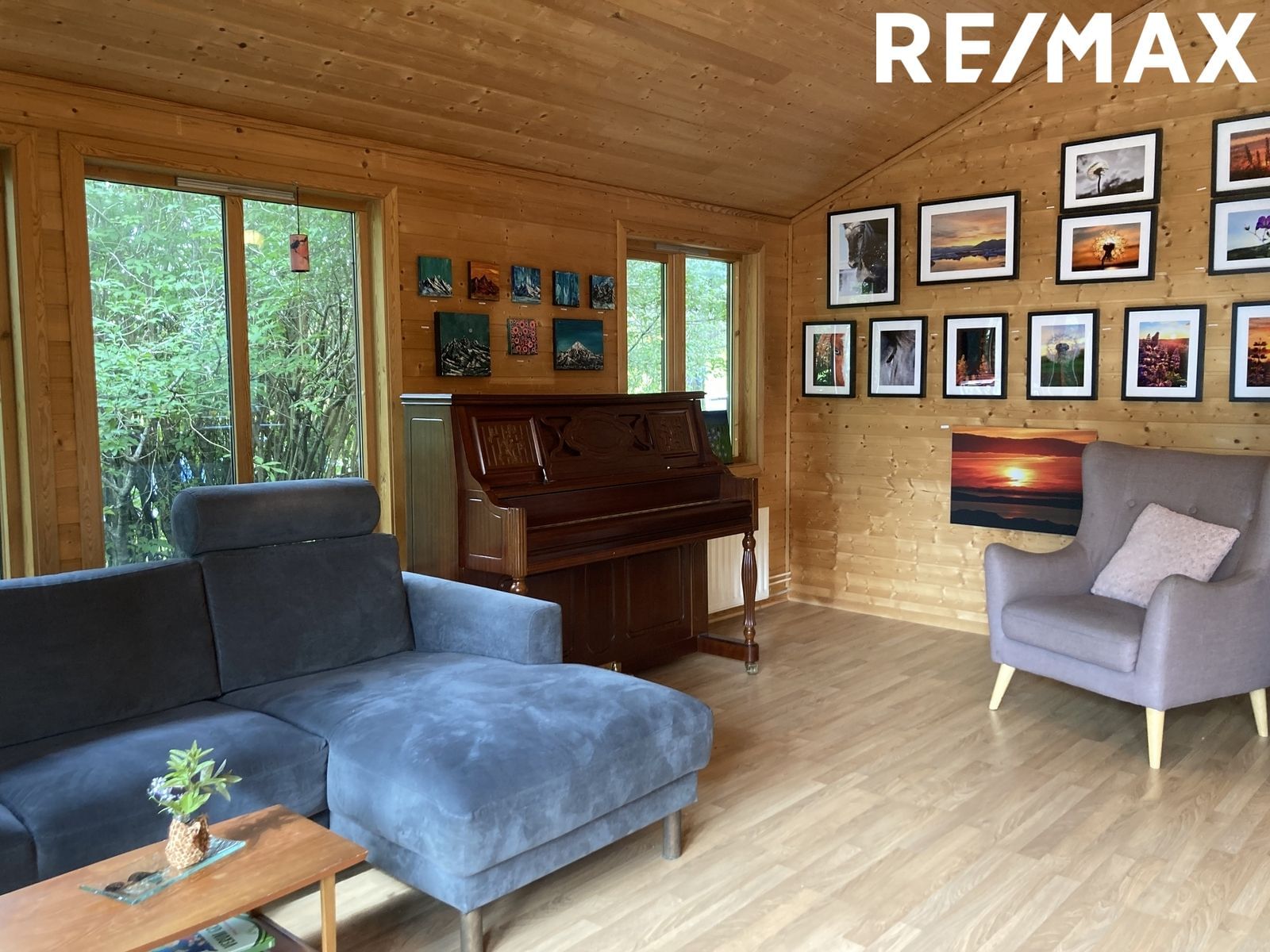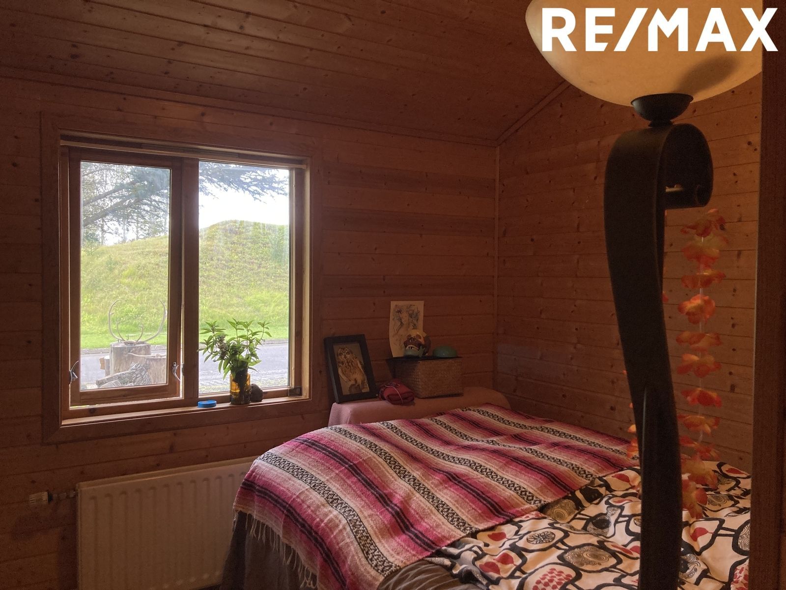 Nánari lýsing: Forstofa: Er með dúk á gólfi og snögum á vegg. Eldhús, borðstofa og stofa: Eru í björtu og opnu rými með aukinni lofthæð ásamt útgang út á verönd sem tengir húsið við garðinn, harðparket á gólfi. Þvottahús/geymsla: Rúmgott með opnanlegu fagi og dúk á gólfi. Svefnherbergi: Eru tvö talsins með dúk á gólfi. Baðherbergi: Er með þreplausri sturtu, salerni, vask og baðskáp, auk þess er hurð úr baðherbergi út í garð. Garður og sælureitur: Stór og skjólgóður garður umvafinn háum trjám sem skapa einstaka náttúrustemmingu.