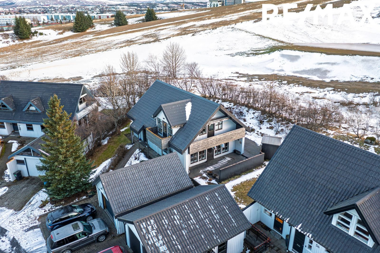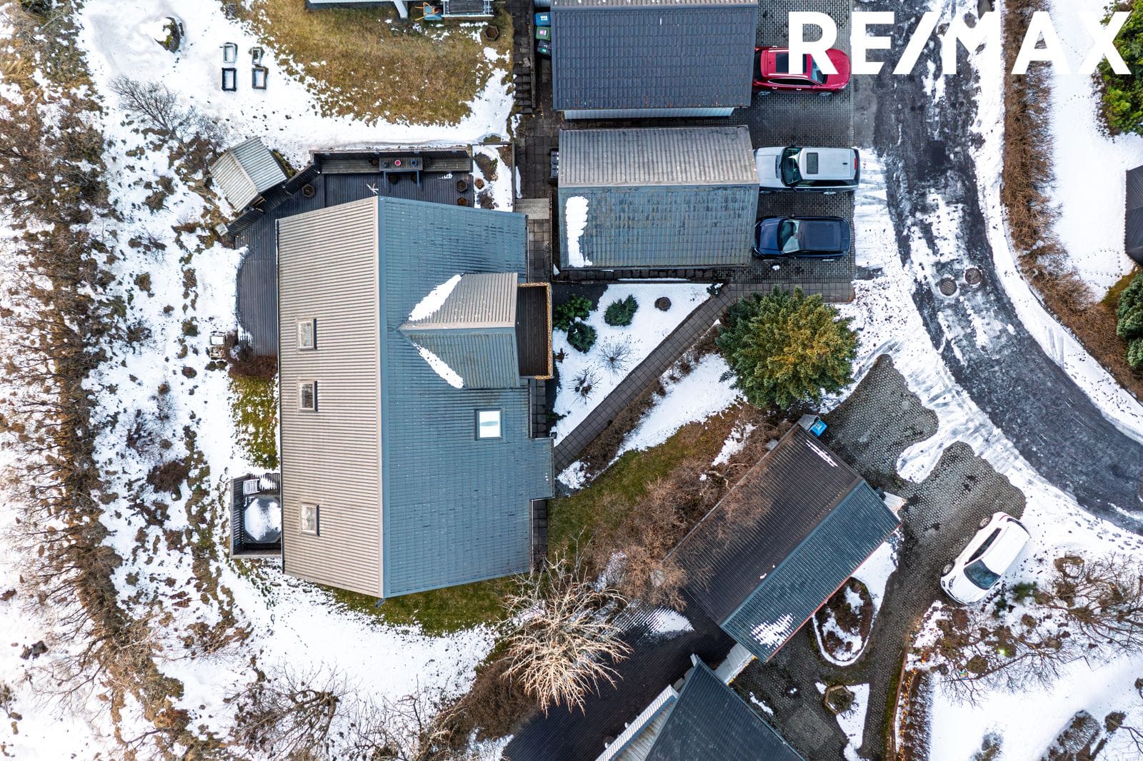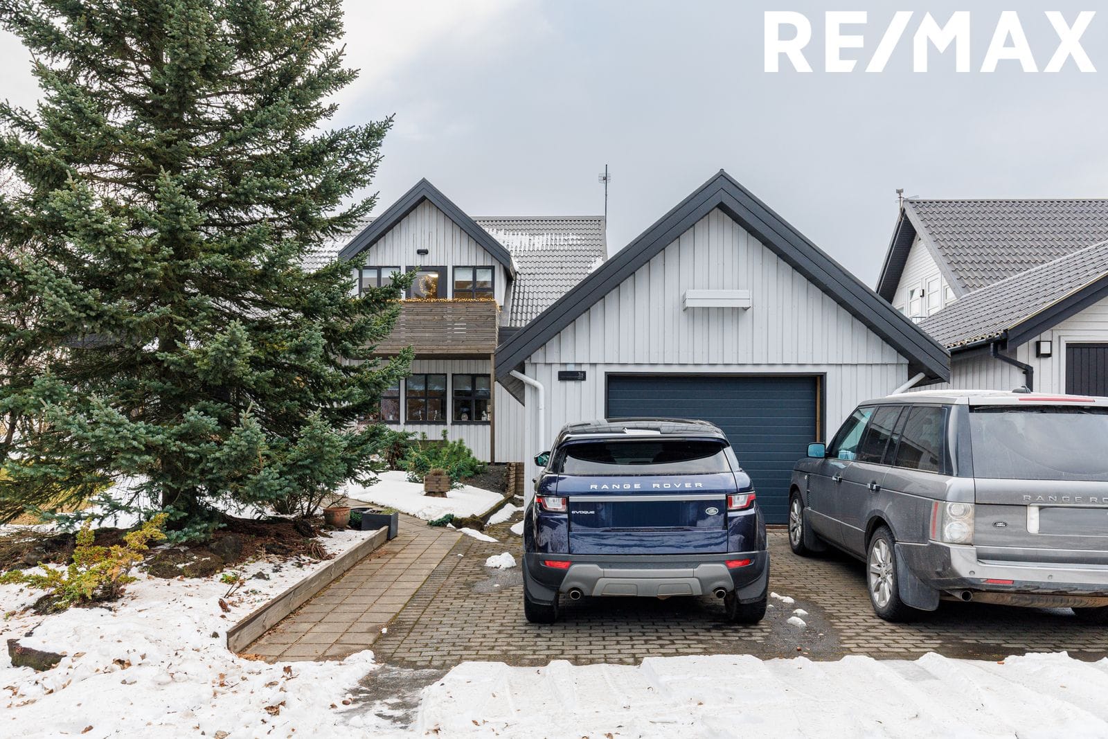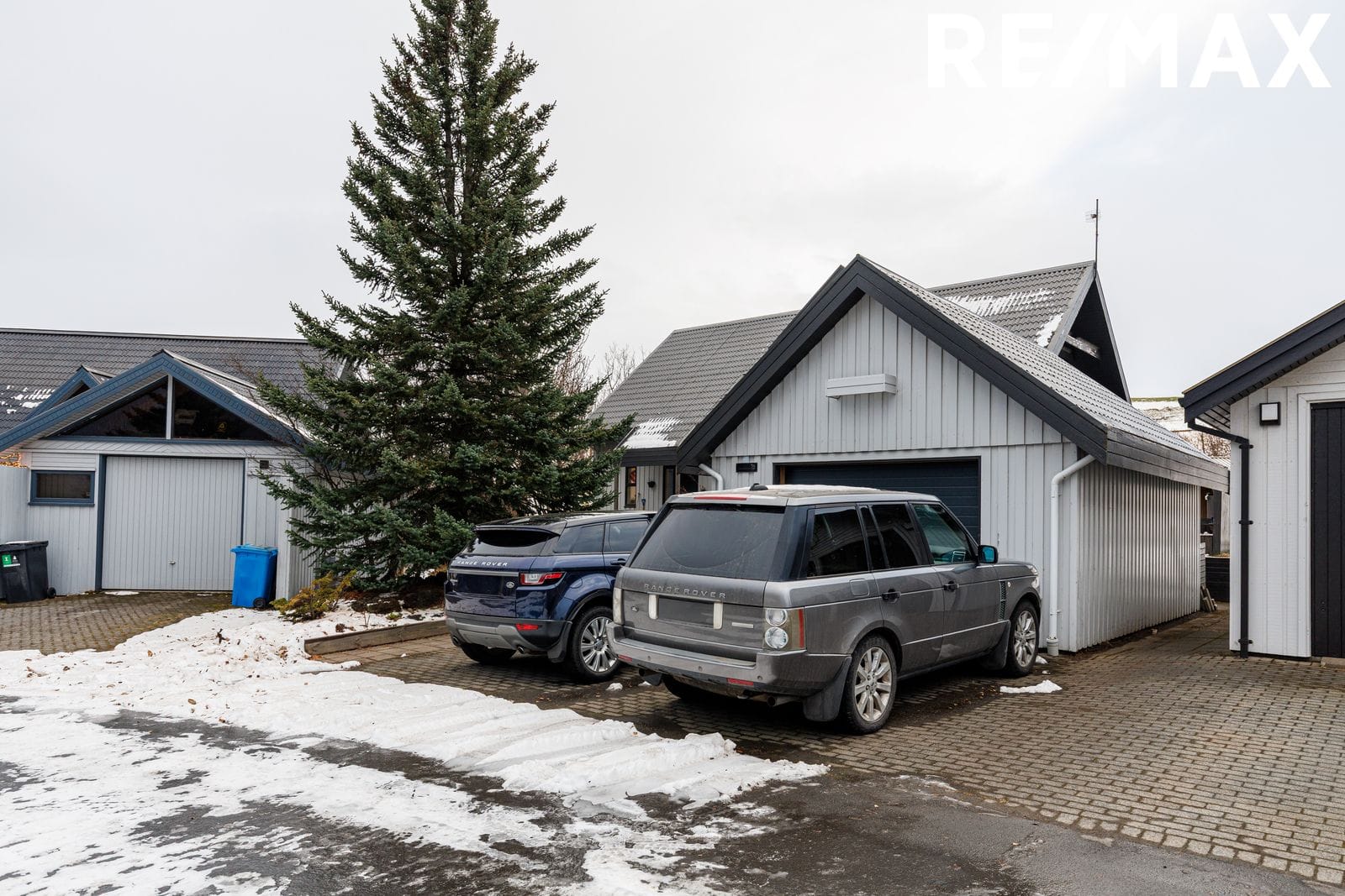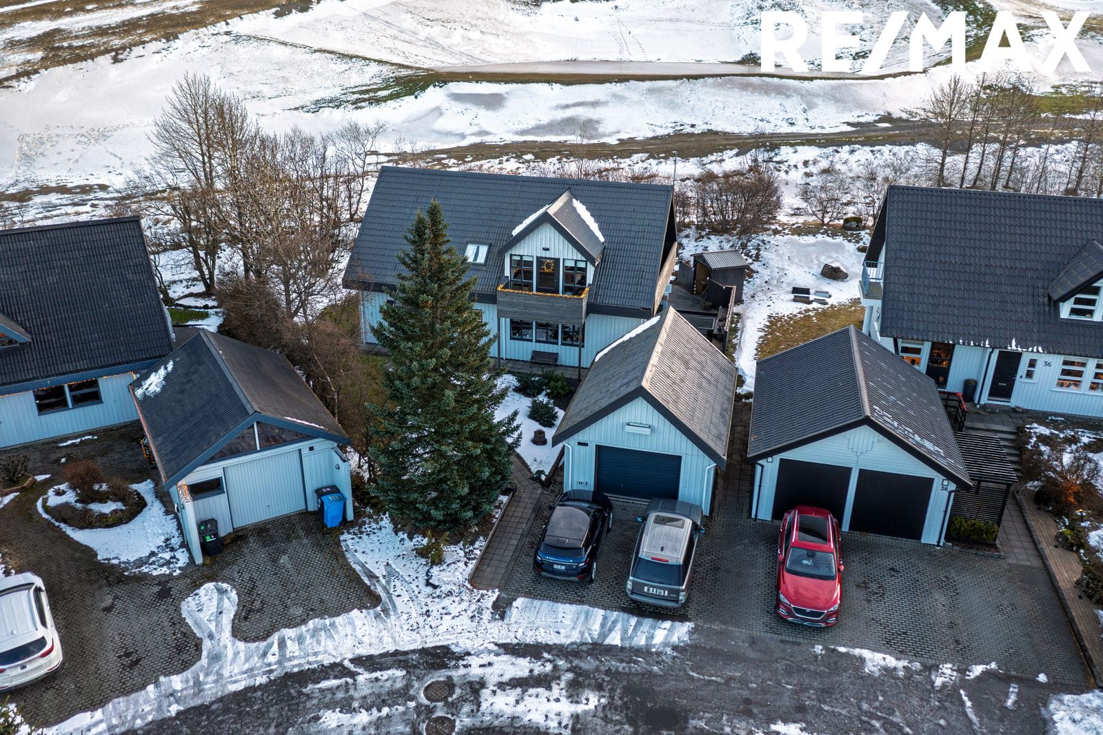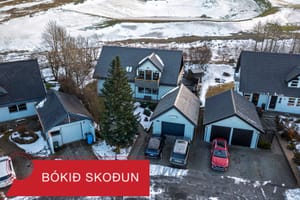 Aðkoma: Hellulagt bílaplan. Einnig er hellulagt að inngangi neðri í húsið og fyrir framan. Hitalögn er undir hellulögn fyrir framan skúrinn sem og að inngangi og gangstéttum við húsið.