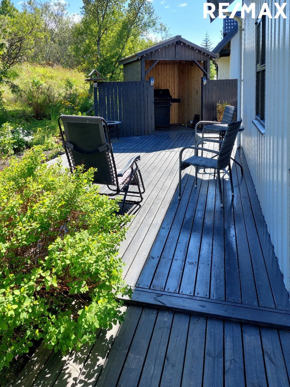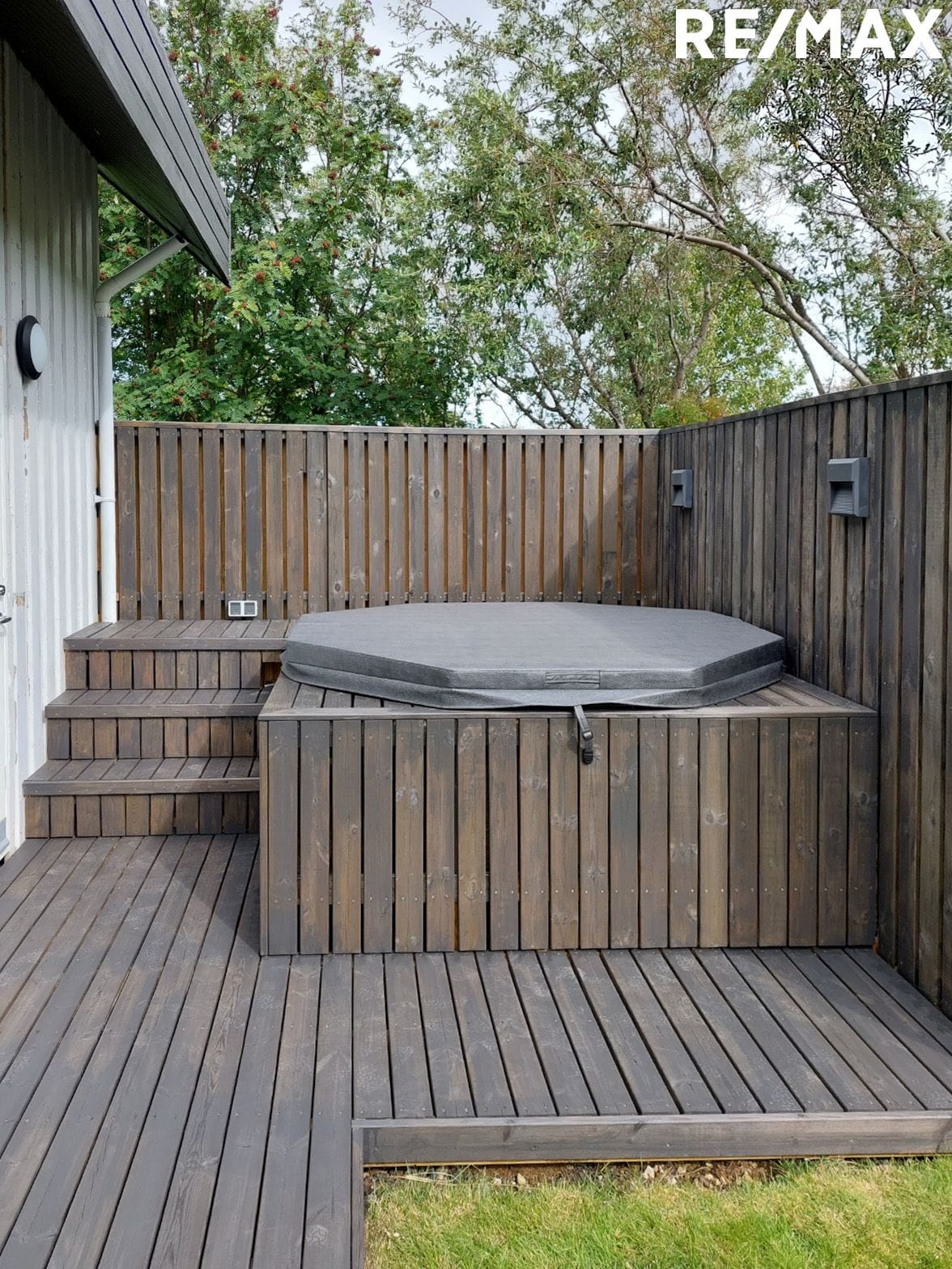 Lóð: Lóðin er einstaklega smekkleg með palli og skjólveggjum. Heitur pottur þar sem stýring er í þvottahúsi. Gott hús fyrir grillið. Hitalögn undir hellulögn við húsið.