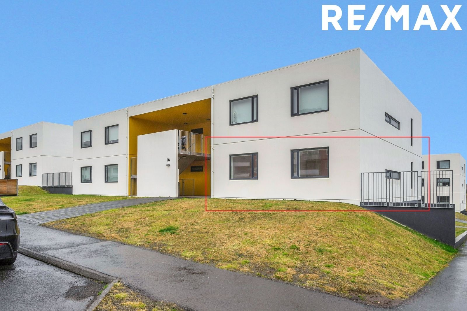Sérinngangur er í íbúðina á jarðhæð frá götu fyrir framan hús.