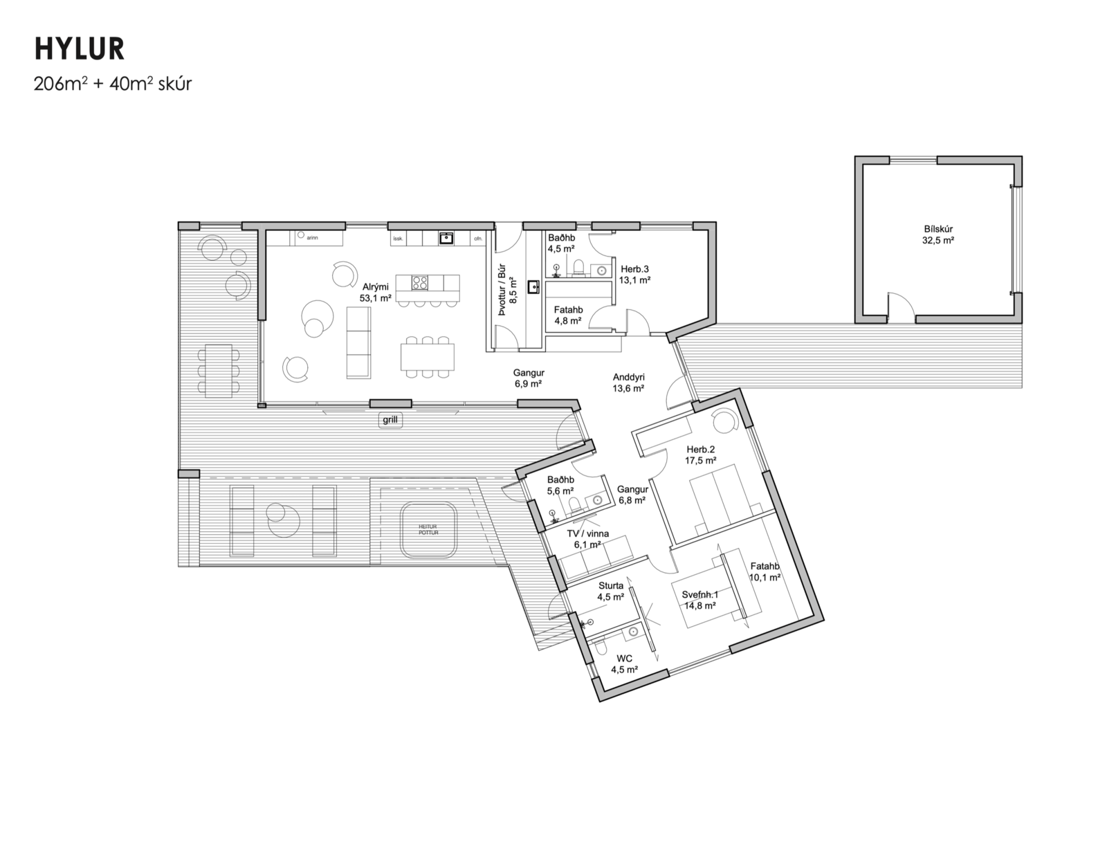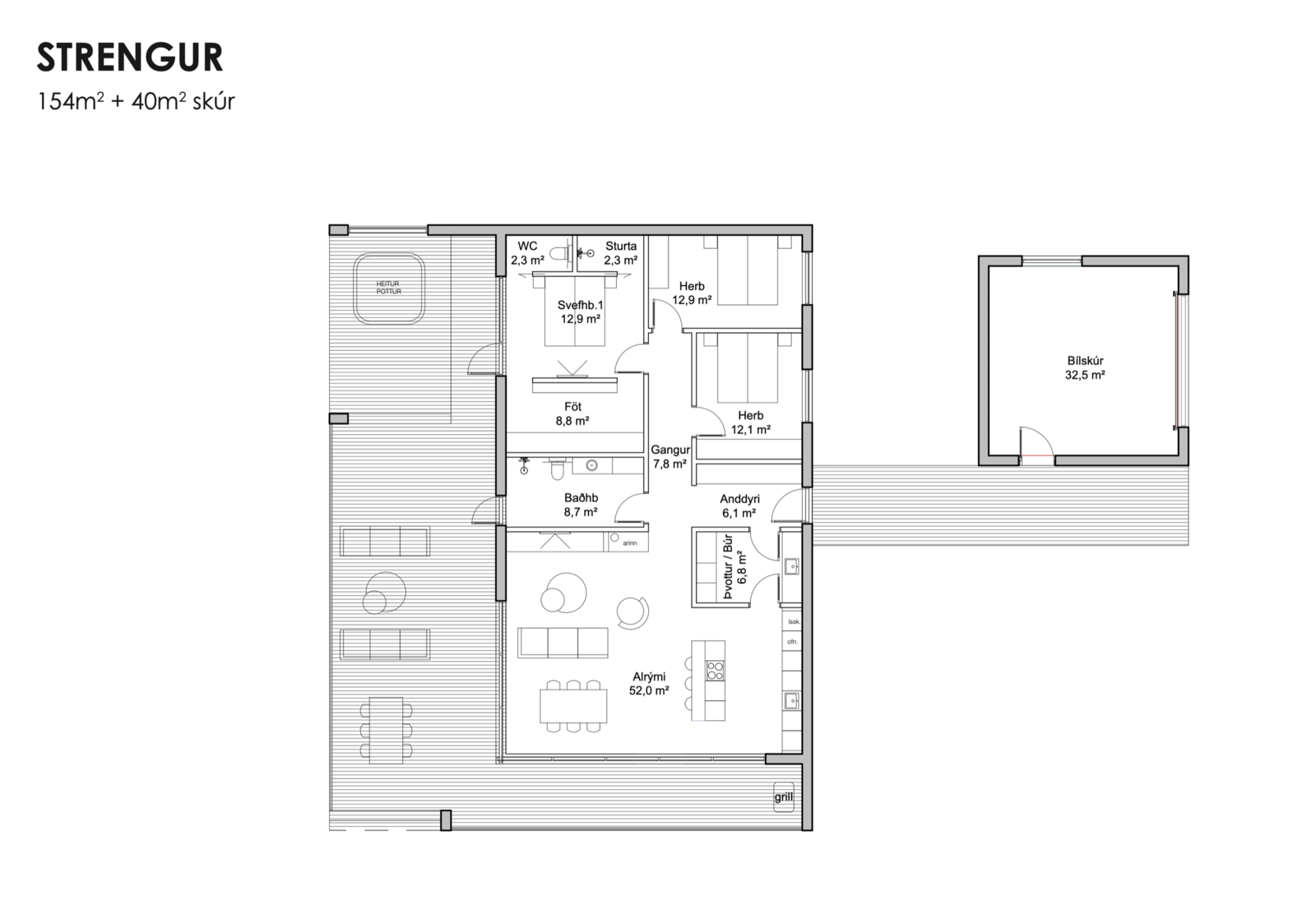 Lóðunum fylgir val um 4 teikningar af stílhreinum og fallegum heilsárshúsum en ekki er skylt að kaupa teikningar af þeim með lóð. Heimilt er að gera kjallara undir öllum íbúðarhúsunum - sjá nánar í breyttu deiliskipulagi dags. 16.12.2020.