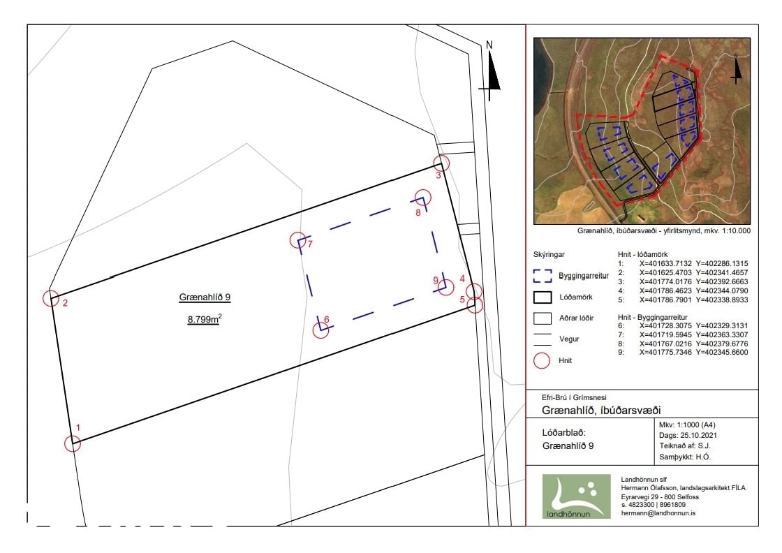 Íbúðarhúsalóðin Grænahlíð 9, 805 Selfoss, í Grímsnes- og Grafningshreppi er 8.799,0 m² m² eignarlóð í íbúðarhverfi með rúmum byggingareit í nýju íbúðahverfi á þessum vinsæla stað á Suðurlandi sem er í um 45 mín akstri frá Reykjavík.