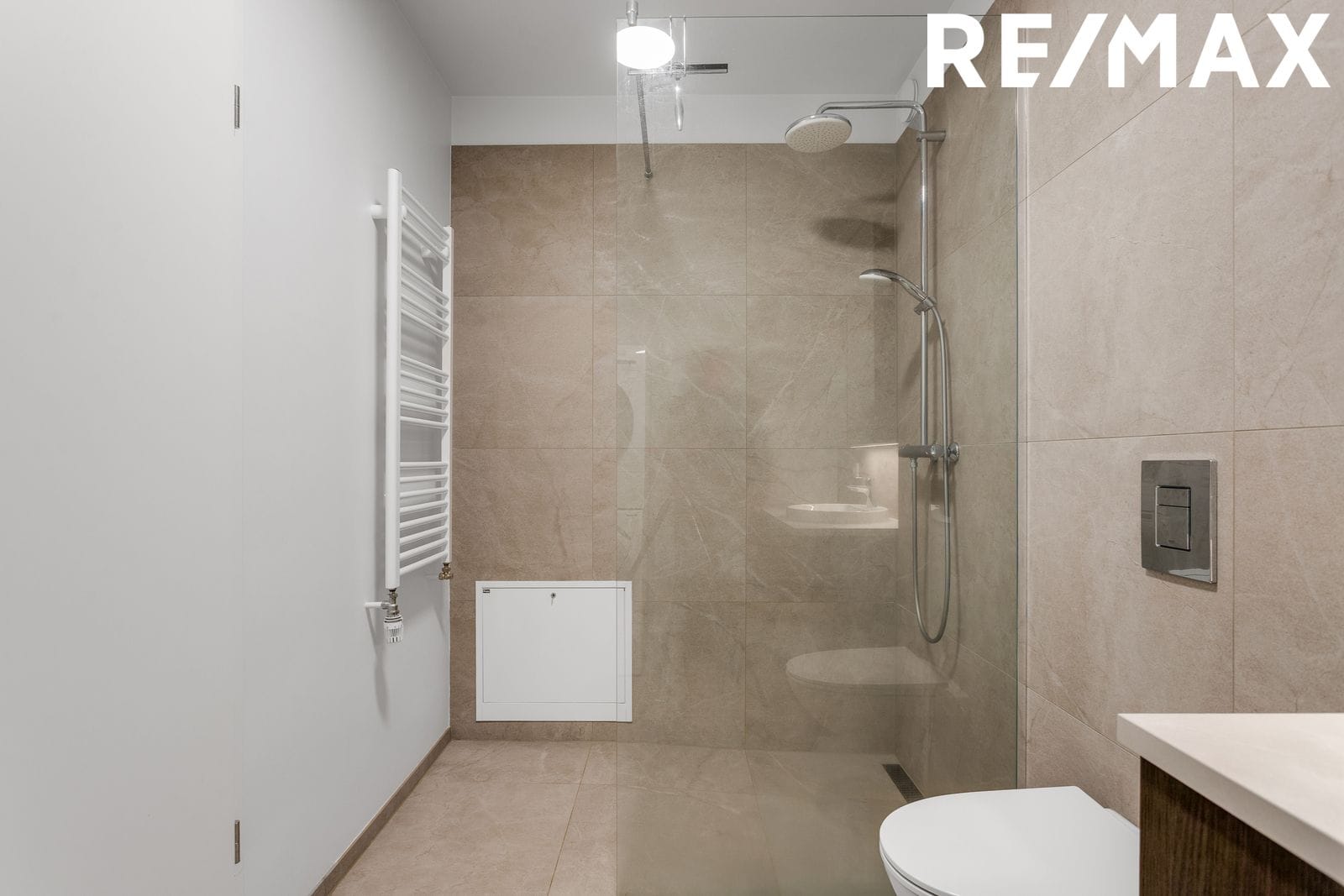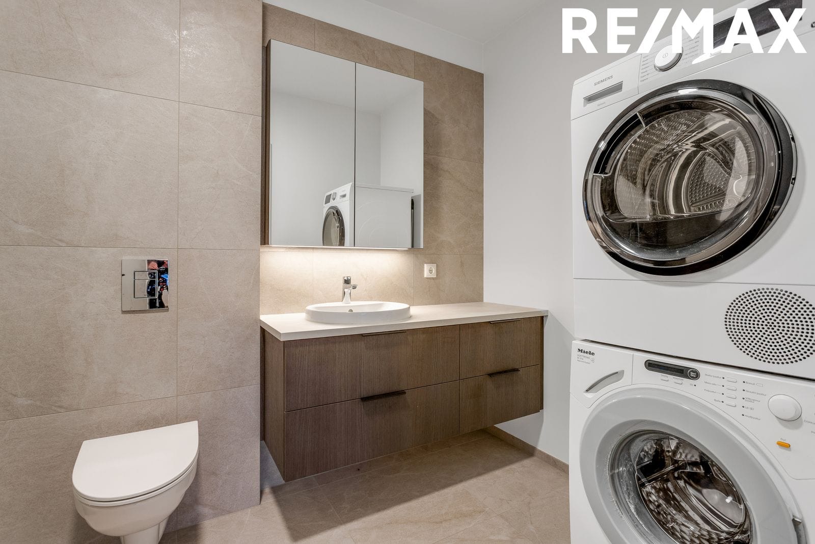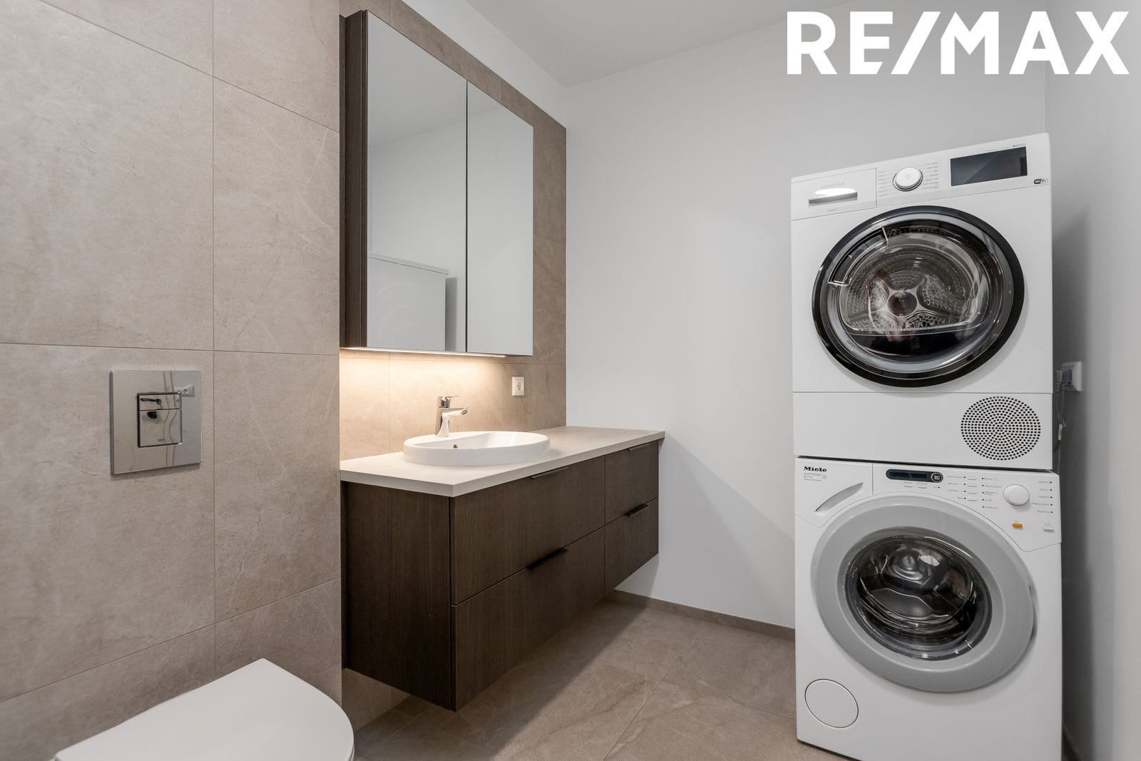 Baðherbergi: Góð baðinnrétting. Flísar á gólfi og hluta af veggjum. Salernið er upphengt og innbyggt. Gert er ráð fyrir þvottavél og þurrkara inn á baðherbergi.