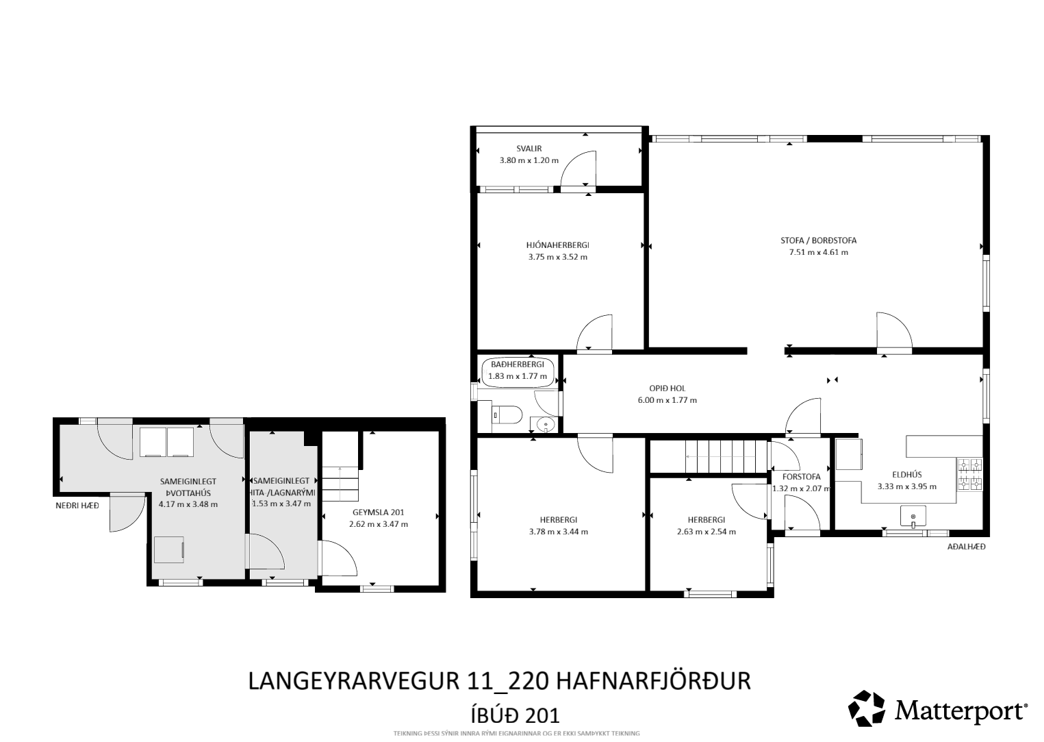 Þvottahús/geymsla: á neðri hæð er sameiginleg geymsla og þvottahús en þaðan er einnig útgengt í bakgarð sem snýr í suðvestur.