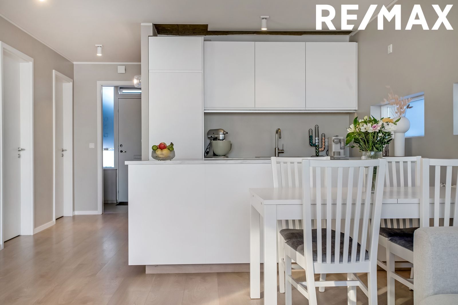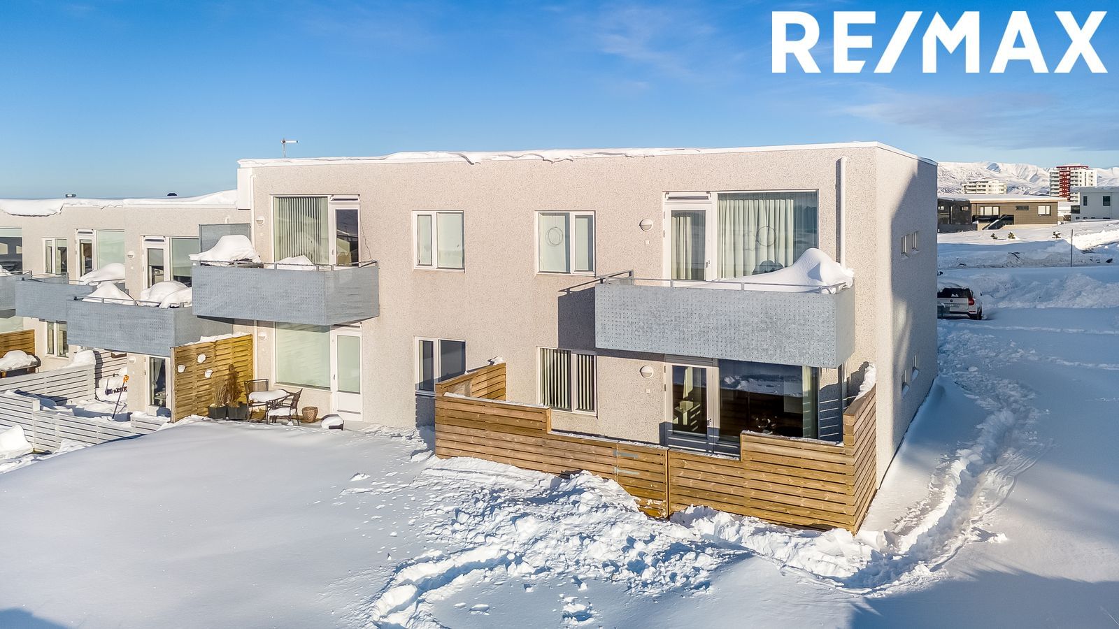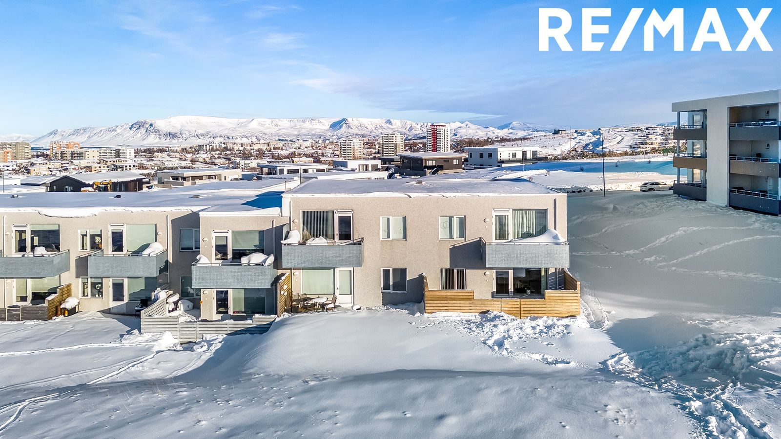 Nánari lýsing eignar: Forstofa er með flísum á gólfi og fatahengi. Eldhús með fallegri hvítri innréttingu með bakarofn í vinnuhæð og rúmgóða eyju. Stofa & borðstofa er með parket á gólfi og opið við eldhús, alrými eignarinnar þar sem er einnig út gengt á rúmgóðan sólpall. Baðherbergi með flísum í hólf og gólf, baðkari með sturtu aðstöðu, handlaug með skúffum, innbyggt klósett. Svefnherbergi I: Er með parket á gólfi og góðum fataskáp. Svefnherbergi II: Er með parket á gólfi og góðum fataskáp. Svefnherbergi III: Er með parket á gólfi. Þar var áður geymsla. Sér þvottahús innan íbúðar sem nýtist sem geymsla einnig. Tvö bílastæði per íbúð ekki merkt, búið að koma fyrir fjórum hleðslustöðvum. Hjóla og vagna geymsla.