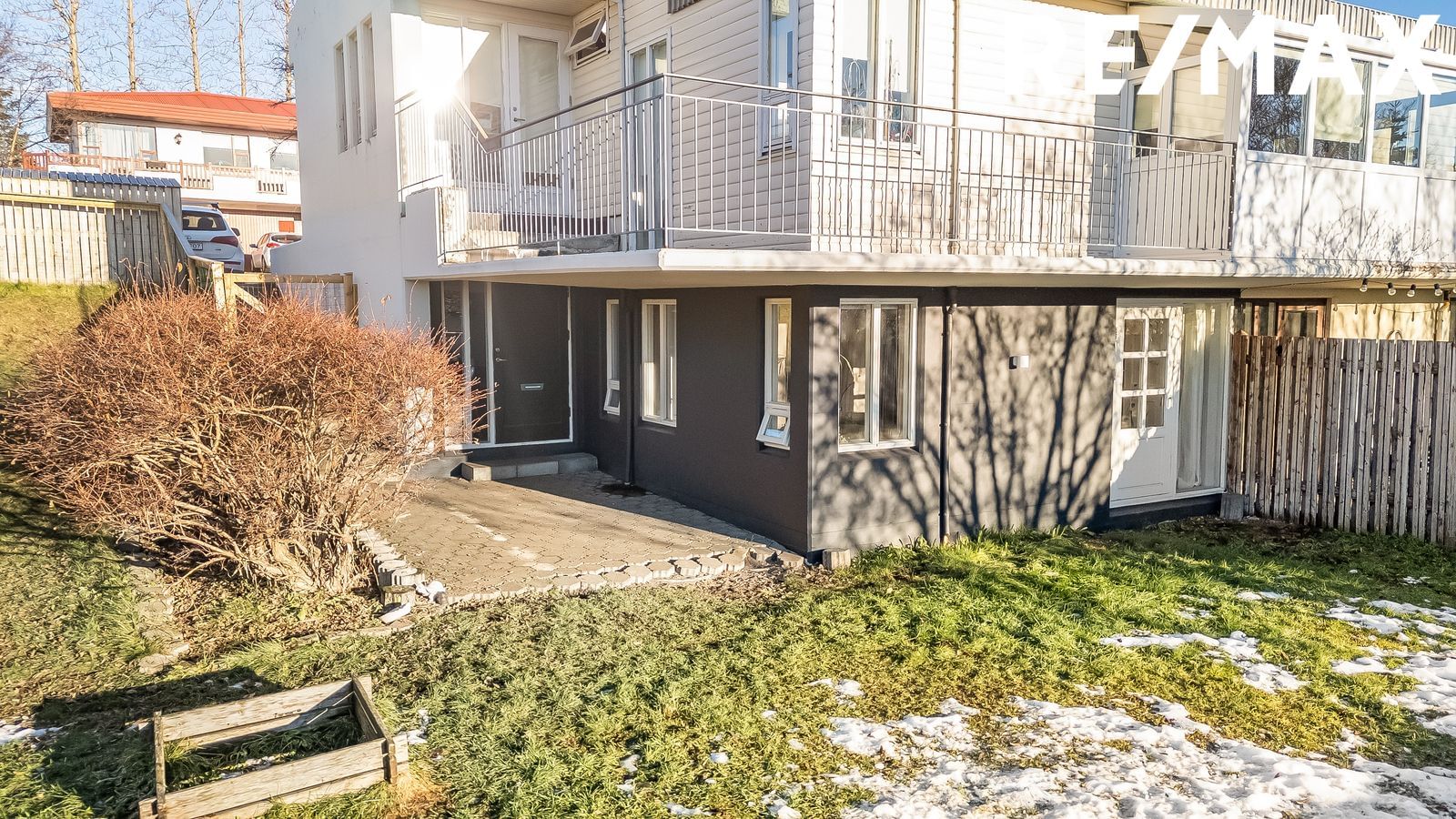 Nánari lýsing eignar: Hol er með parket á gólfi og fatahengi. Eldhús fallega innréttingu með bakarofn í vinnuhæð og gott rými fyrir borðstofuborð. Stofa er með parket á gólfi og opið að hluta með borðstofu. Baðherbergi var endurnýjað að fullu, walk in sturta, flísalagt í hólf og gólf, innbyggt klóssett og handlaug með skúffum, tengi fyrir þvottavél og þurrkara. Svefnherbergi 1 er með parket á gólfi og nýlegum fataskáp. Útgengt út á rúmgóða verönd til suðurs. Sérgeymsla er í sameign sem telur ekki inn í heildar fermetra eignarinnar.