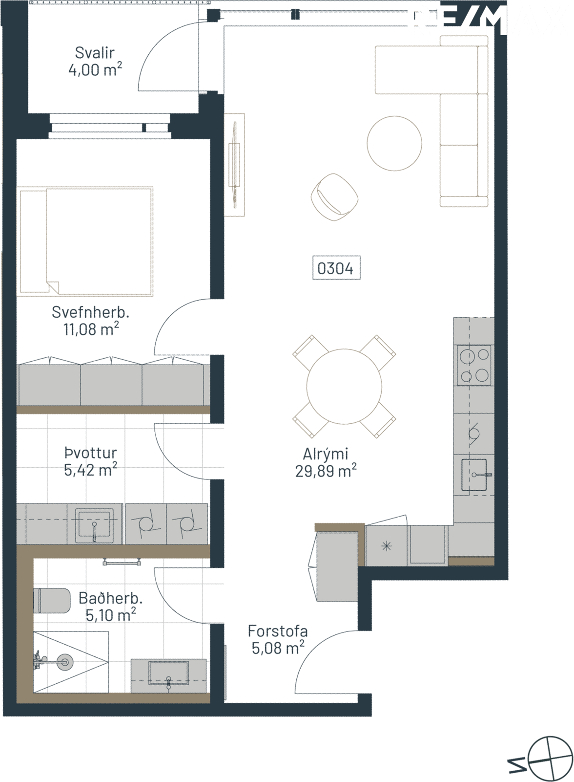 Íbúð 304: Rúmgóð og björt tveggja herbergja,