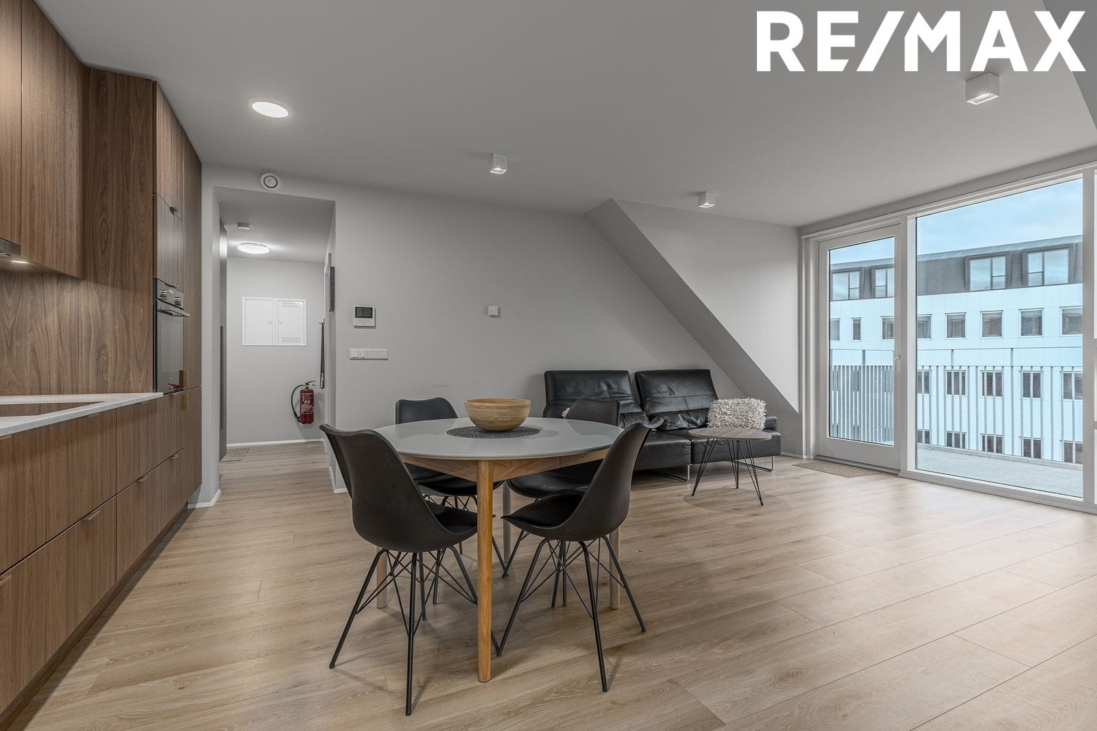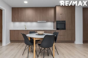 Eldhús: Tengist stofu og borðstofu í stóru alrými. Falleg eldhúsinnrétting frá Axis úr hnotu. Hvítur Quartz steinn í borðplötu. Undirlímdur vaskur. Siemens bakstursofn í vinnuhæð. Spansuðuhelluborð með viftu yfir. Innbyggður kæli/frystiskápur sem og uppþvottavél fylgja með.