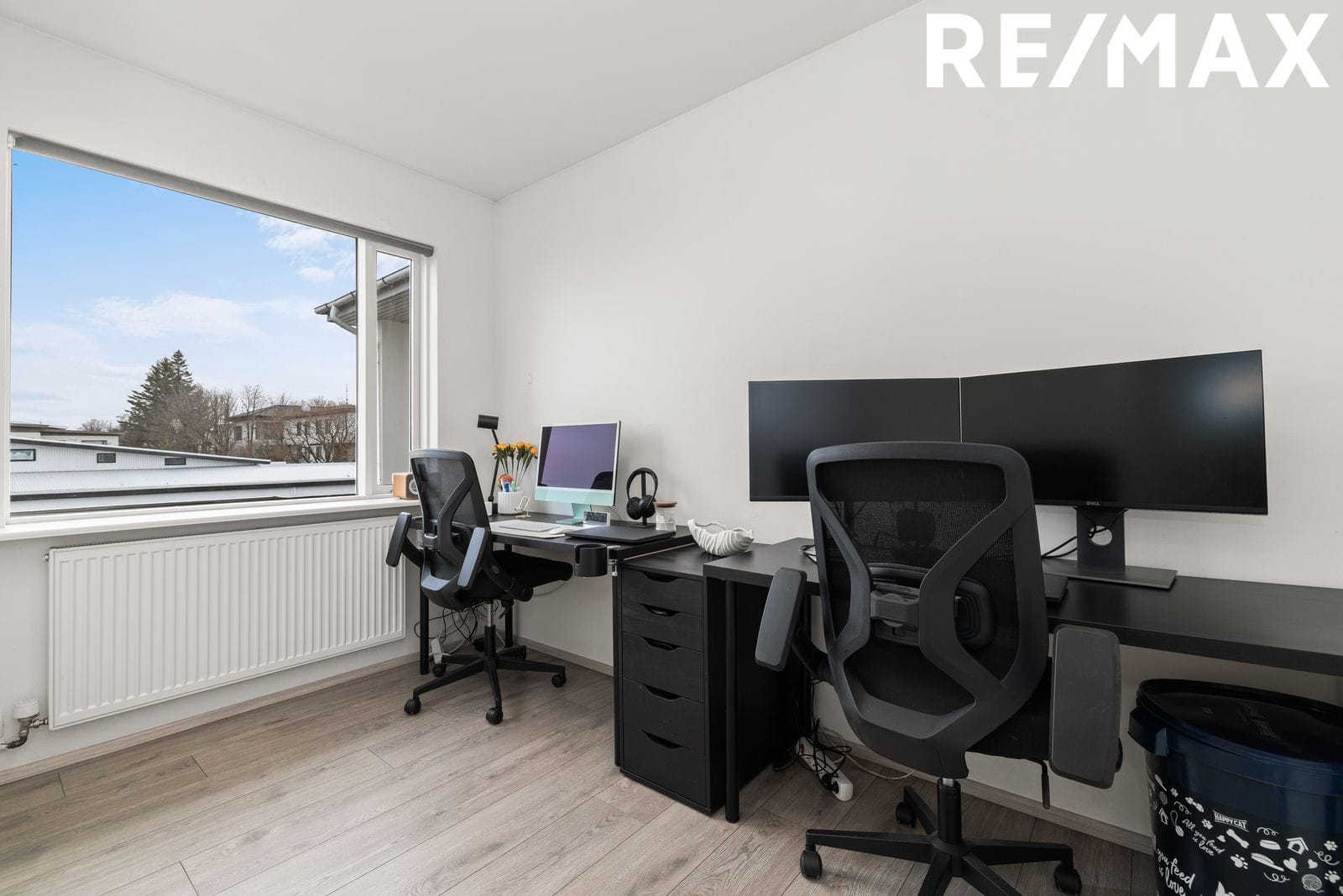 Herbergi II: Er í dag nýtt sem skrifstofa. Harðparket á gólfi.