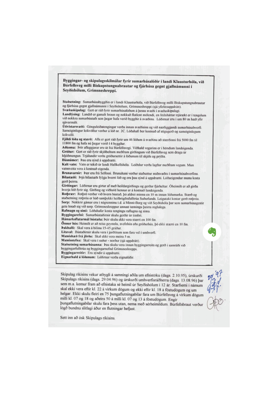 Annað:Lóðin: Eignarlóð. Alls 10800 fm. Innkeyrslan er malarlögð, nettur grasblettur er sunnan við húsið og töluverður gróður er á lóðinni,