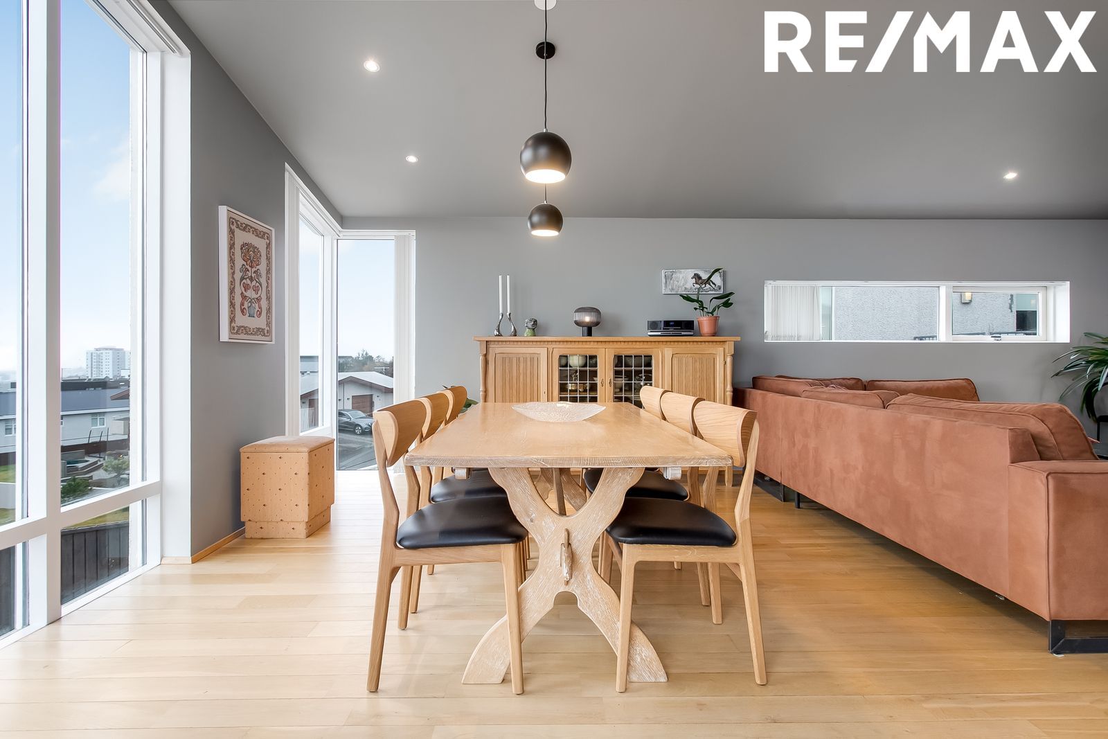 Fimm svefnherbergi og tvö baðherbergi.** Fyrirhugað fasteignamat 2026: 161.050.000 kr.** Eignin býður upp á mikla möguleika, t.d. fjölga svefnherbergjum eða útbúa sér íbúð með sérinngangi.Nánari lýsing: