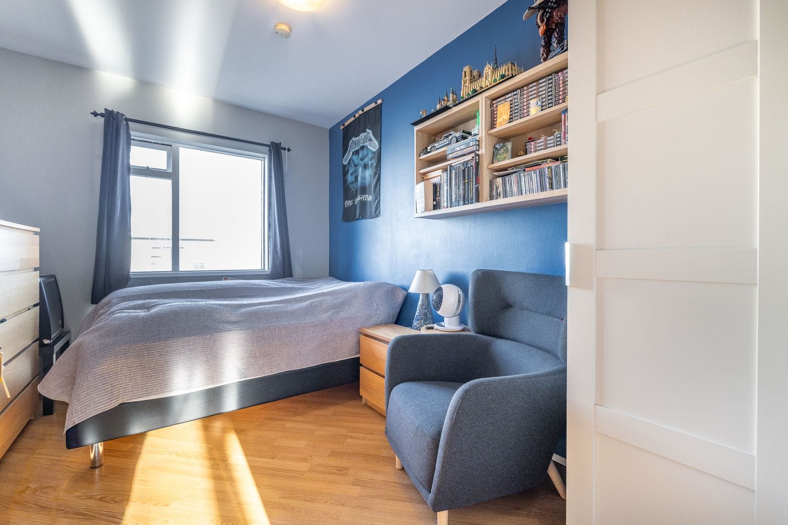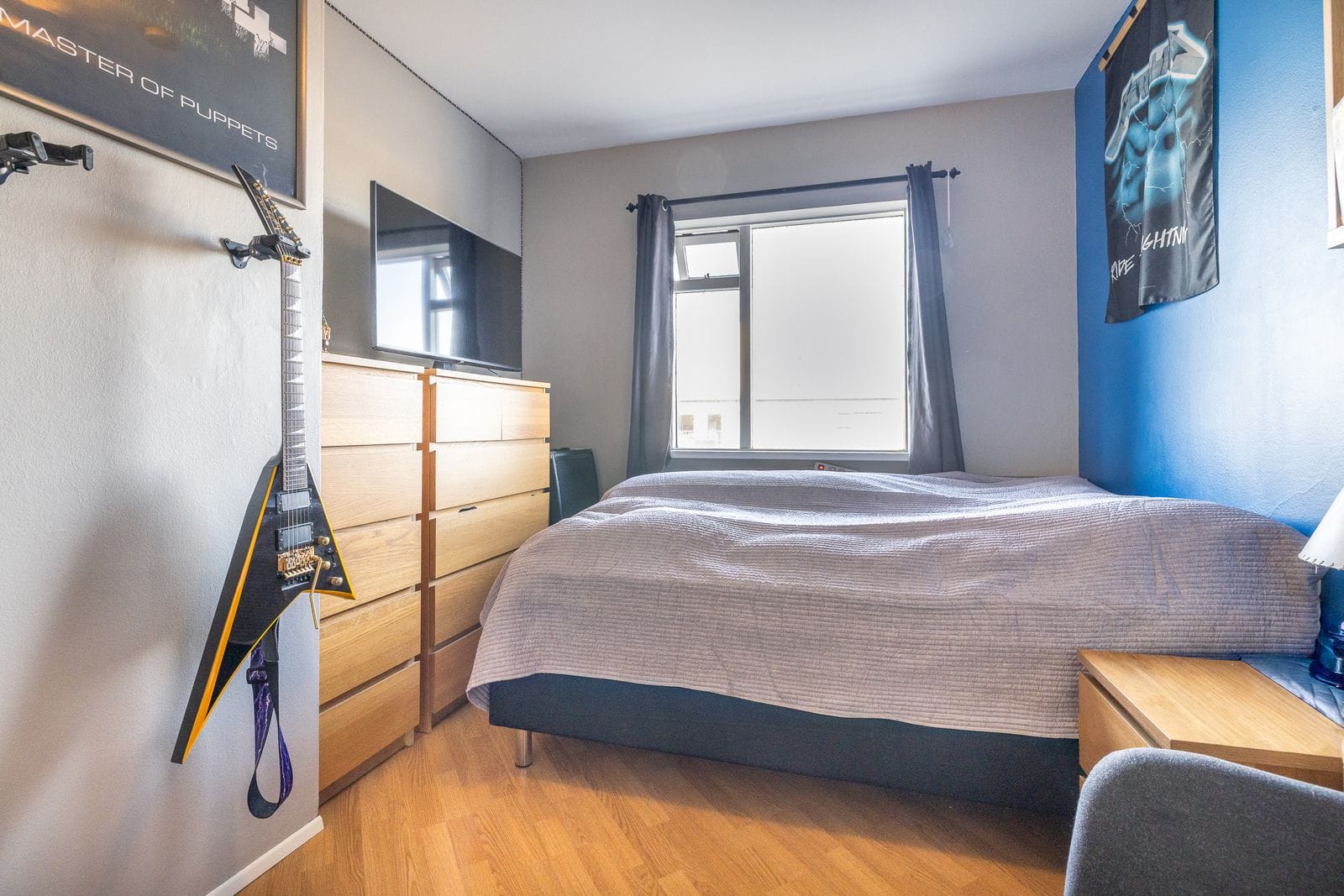 Þrjú rúmgóð svefnherbergi með parket á gólfi og gluggum sem snúa til norðursþ