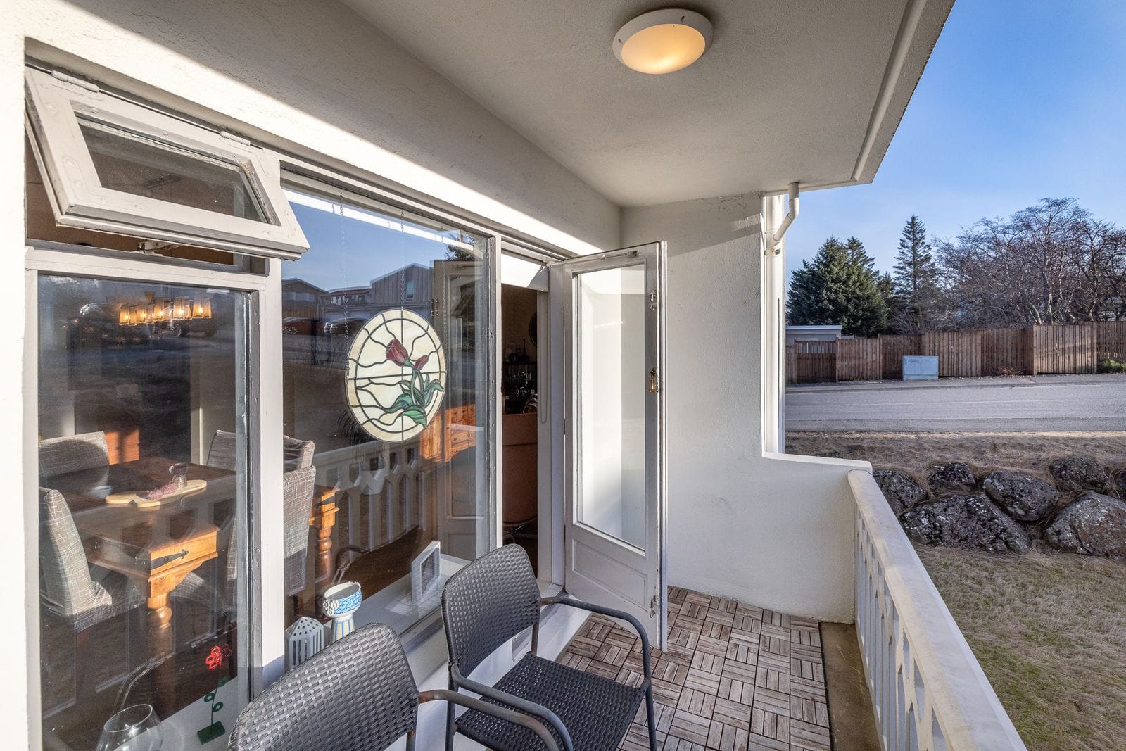 Svalir voru endursteyptar árið 2016. Rúmgóðar með parketflísum og snúa í suður.