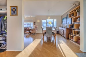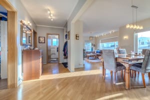 Mjög rúmgóð borðstofa og stofa eru samliggjandi með stórum gluggum til suðurs og útgengt út á suðursvalir sem voru endursteyptar árið 2016.