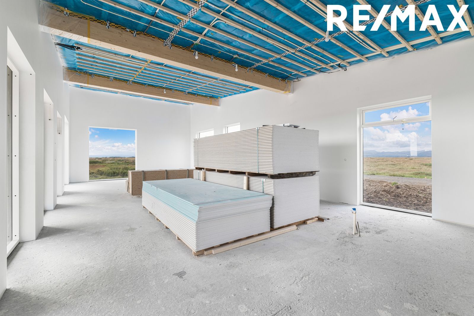Norðurslóð 8 er 263,6 m2, 5 herbergja einbýlishús á einni hæð með 2 baðherbergjum og 1 gestasalerni. Húsið stendur á stórri 1,66 Ha lóð.